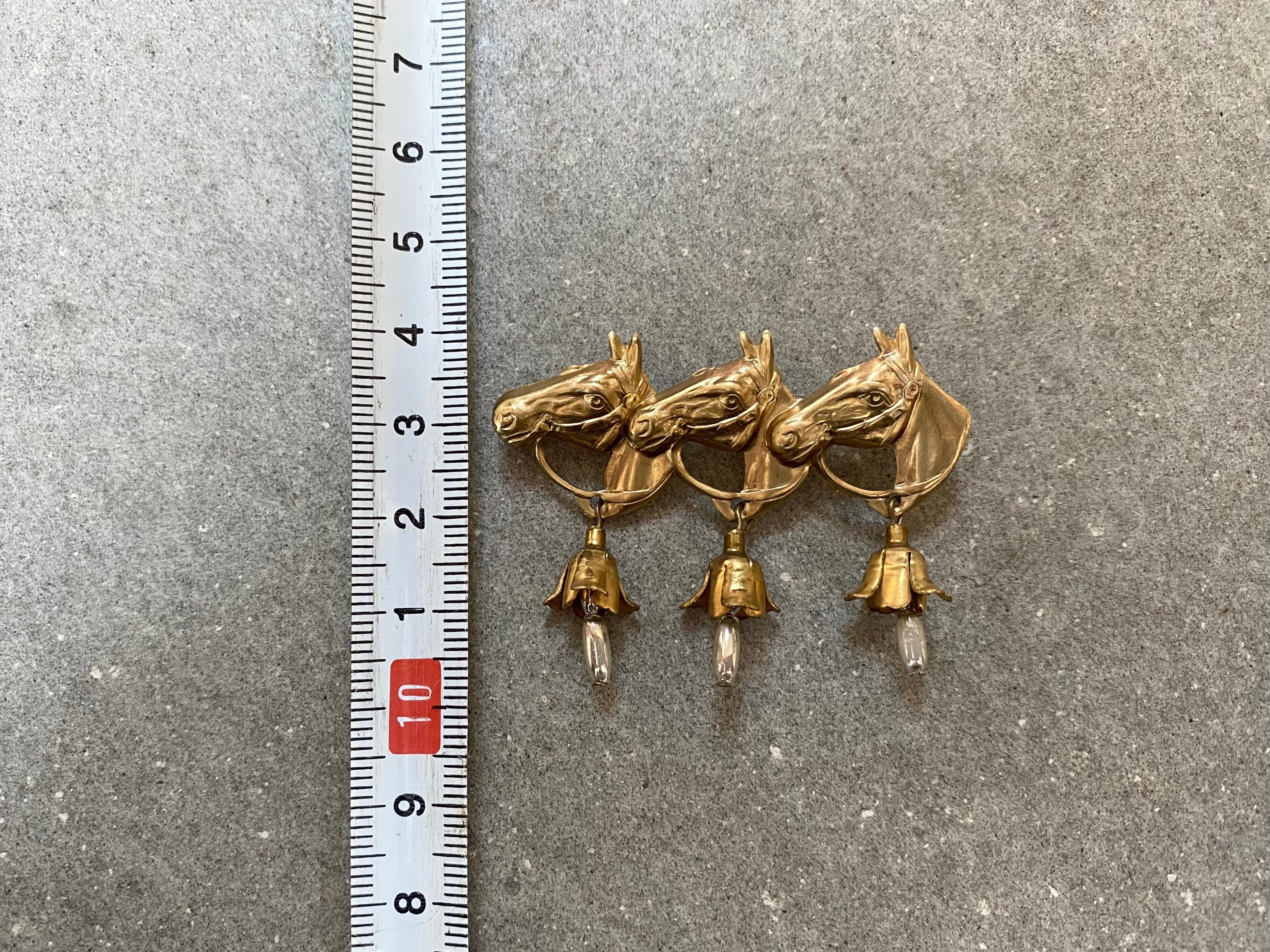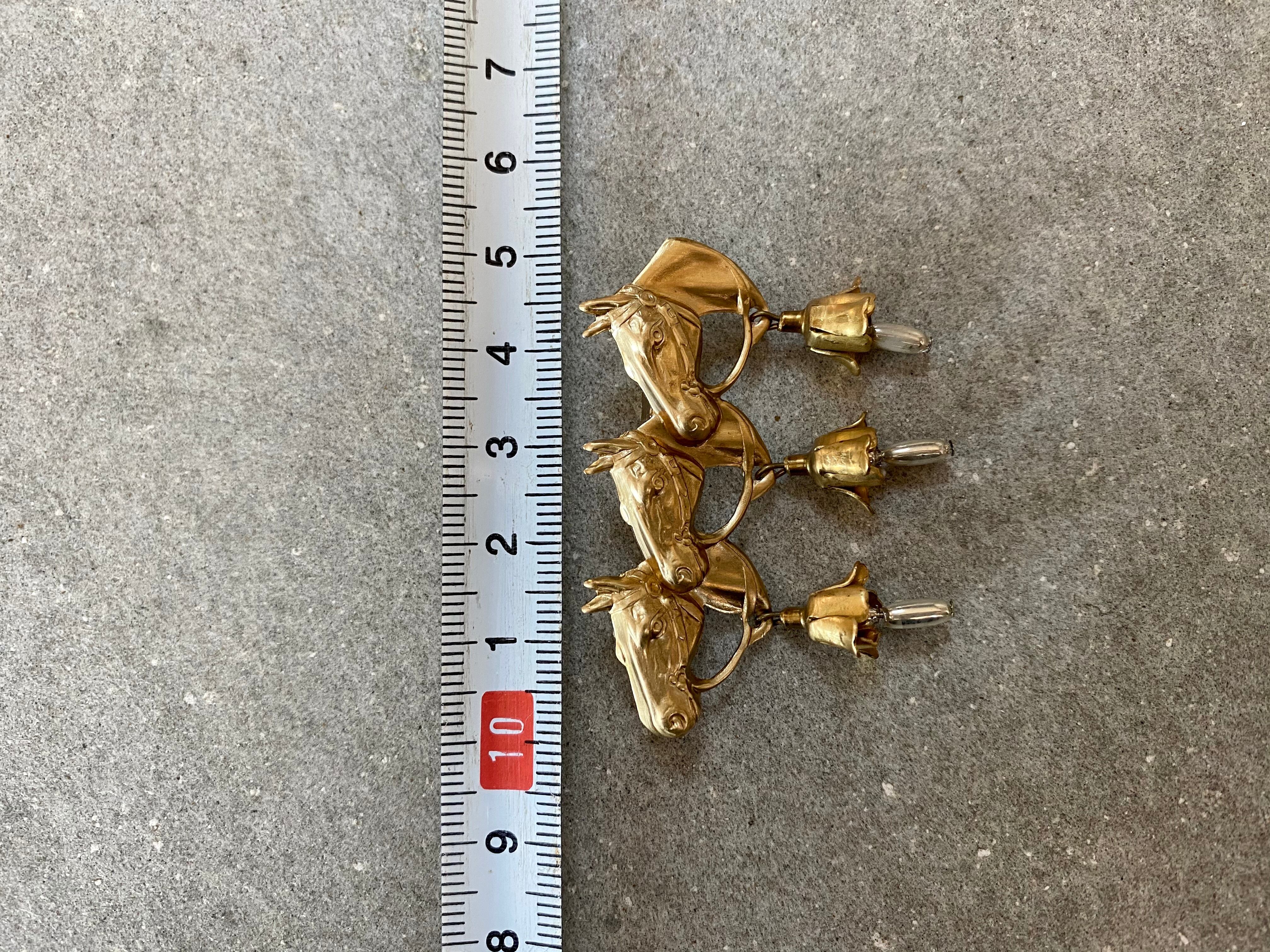 3頭それぞれのホースヘッドの喉元に添えた、スフレガラスを包んだ小さなお花が、可憐な鈴のような雰囲気です。