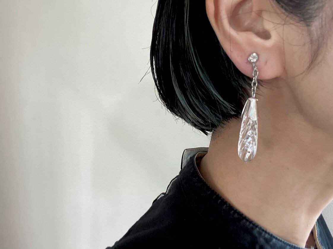 クリア×シルバーの組み合わせが、ひんやりとした印象で今の時期にピッタリです。