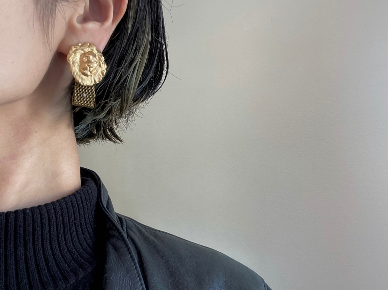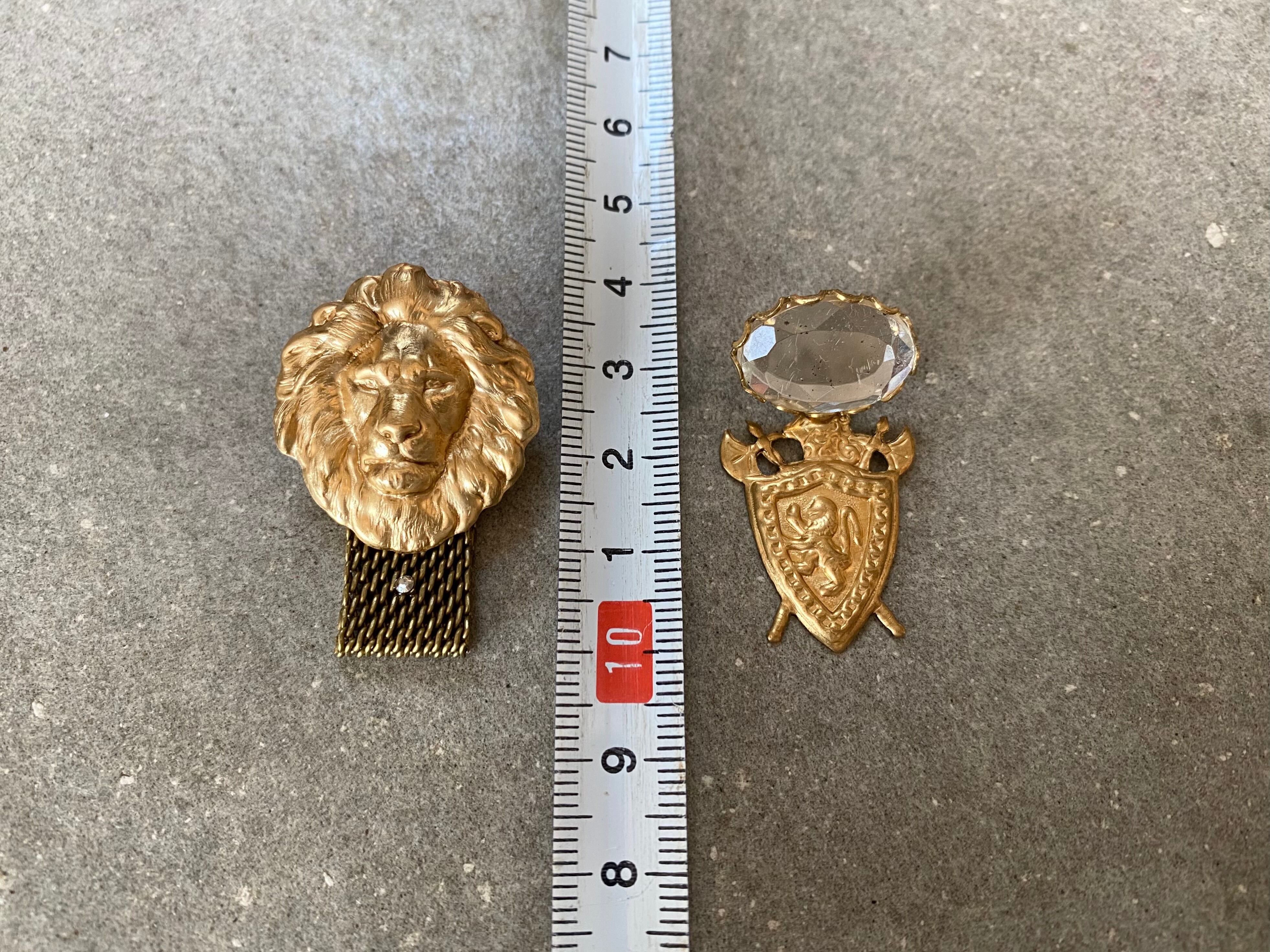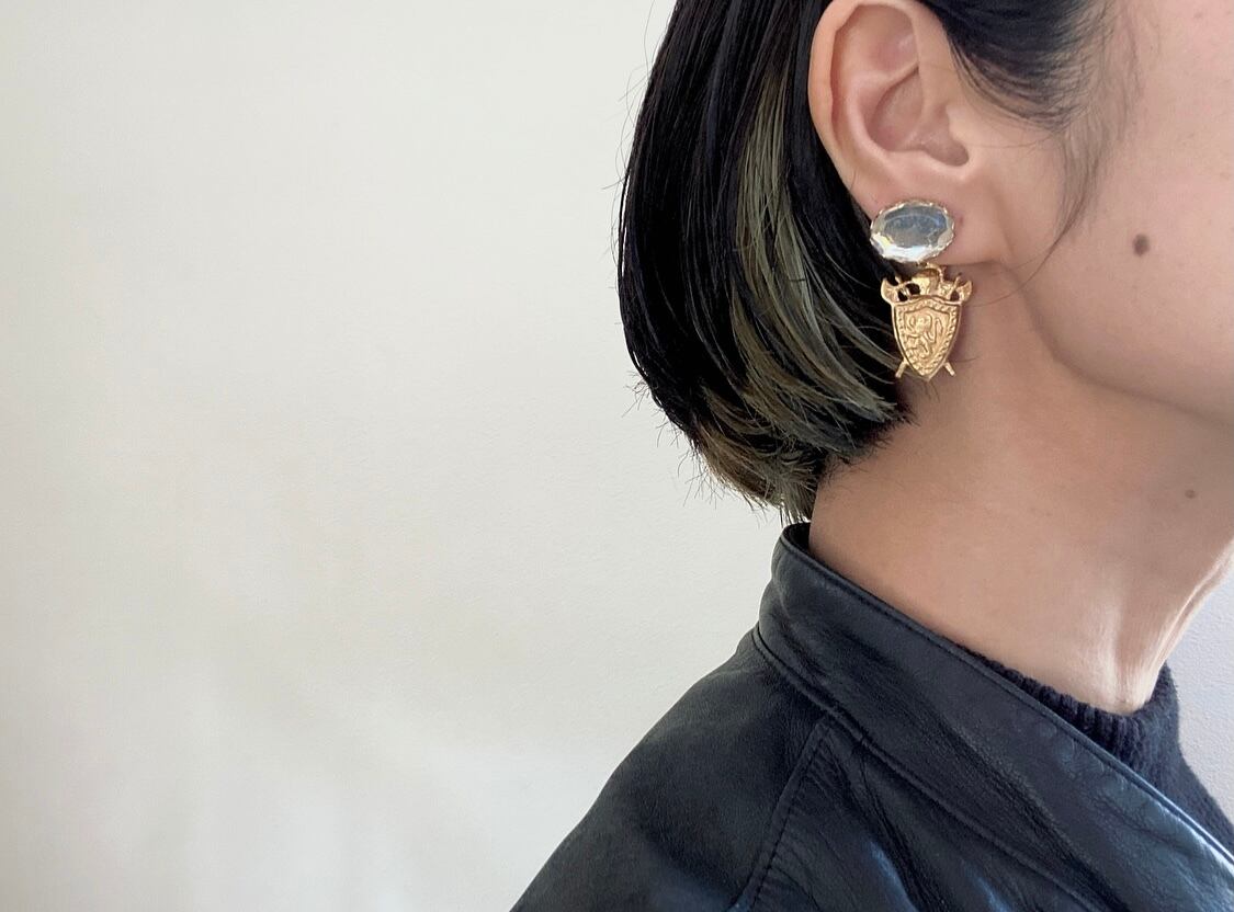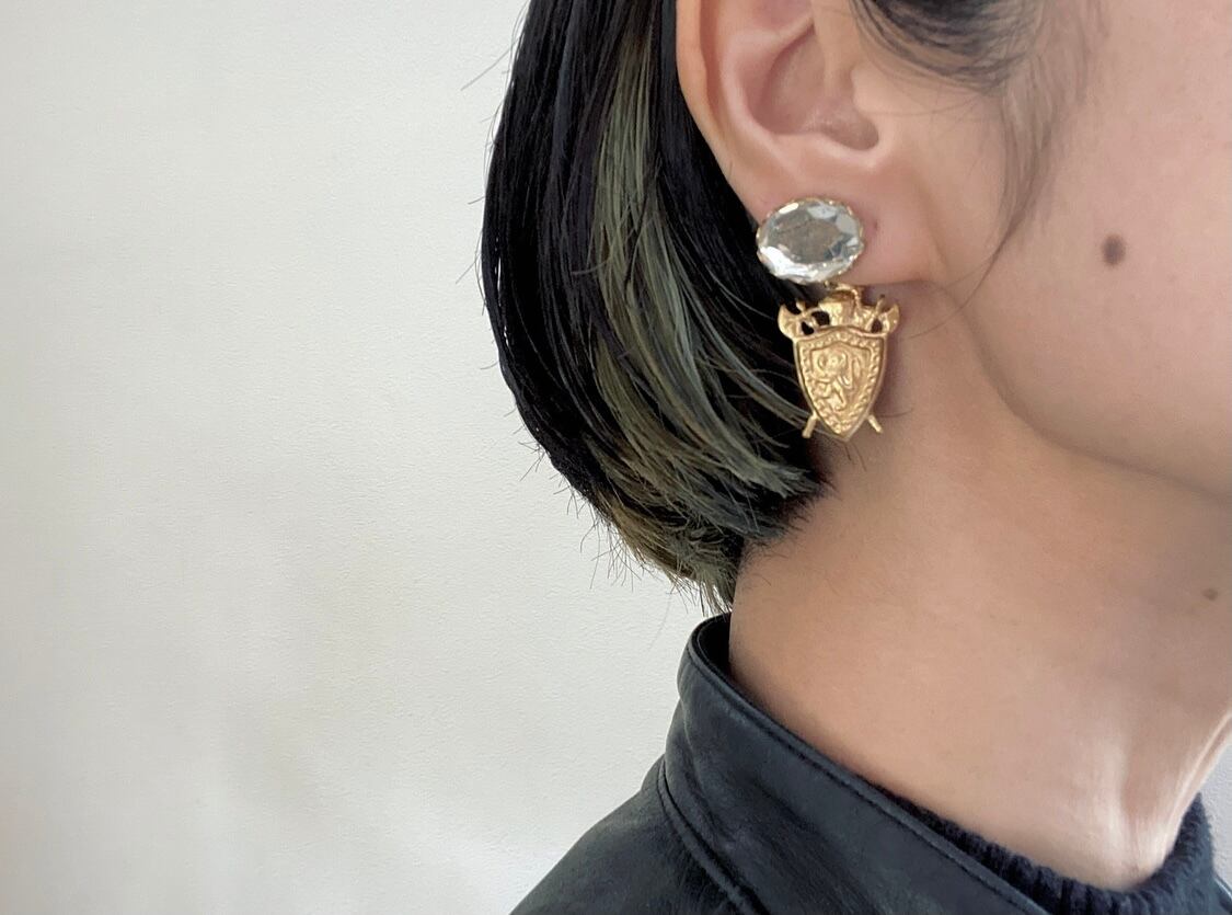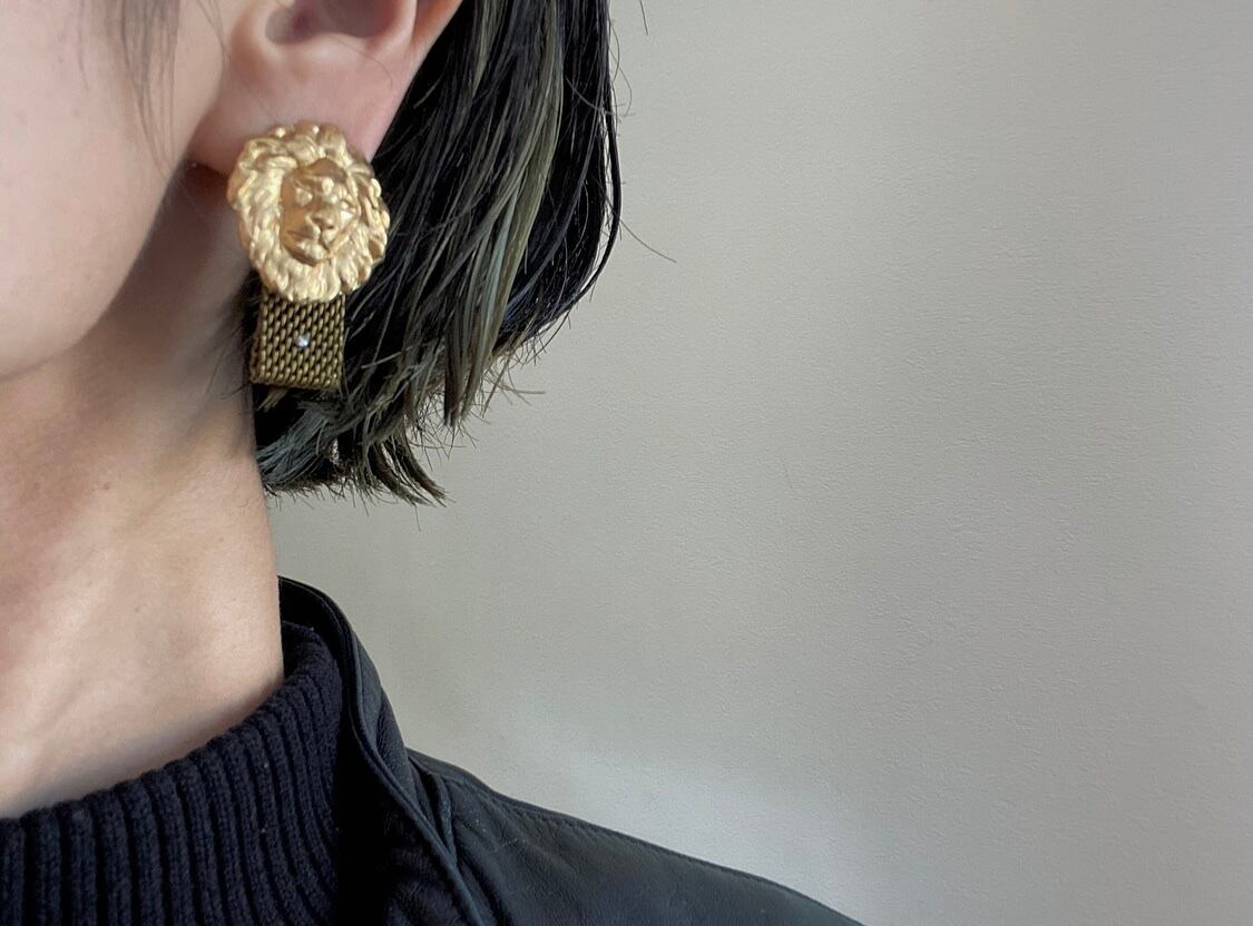 個性的なライオンパーツに同じくライオンのモチーフが施されている盾モチーフの真鍮パーツを組み合わせて、コッソリと統一感を持たせています。
