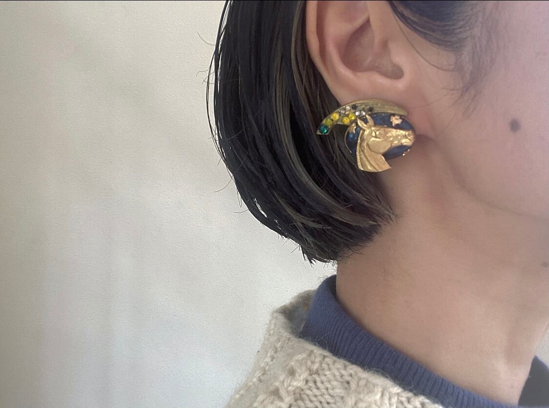 ヴィンテージパーツを組み合わせて、アシンメトリーなピアスを作りました。