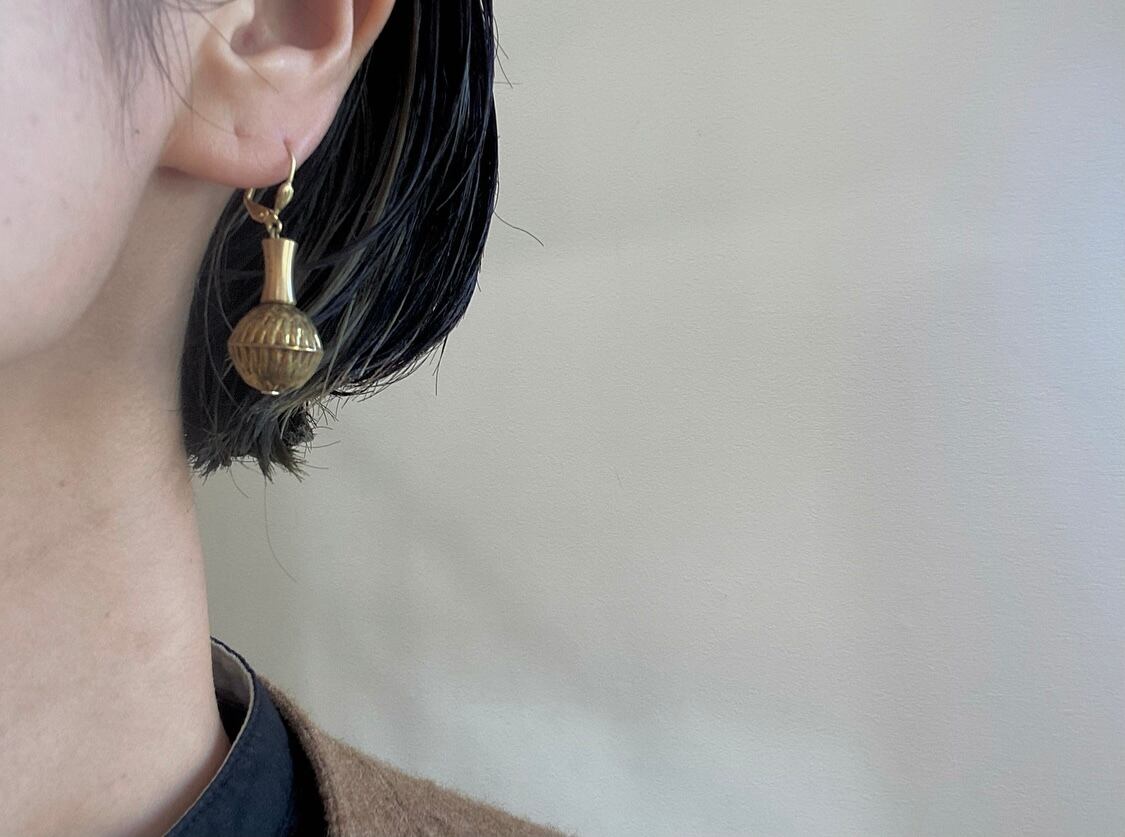 ヴィンテージパーツを組み合わせてアシンメトリーピアスを作りました。