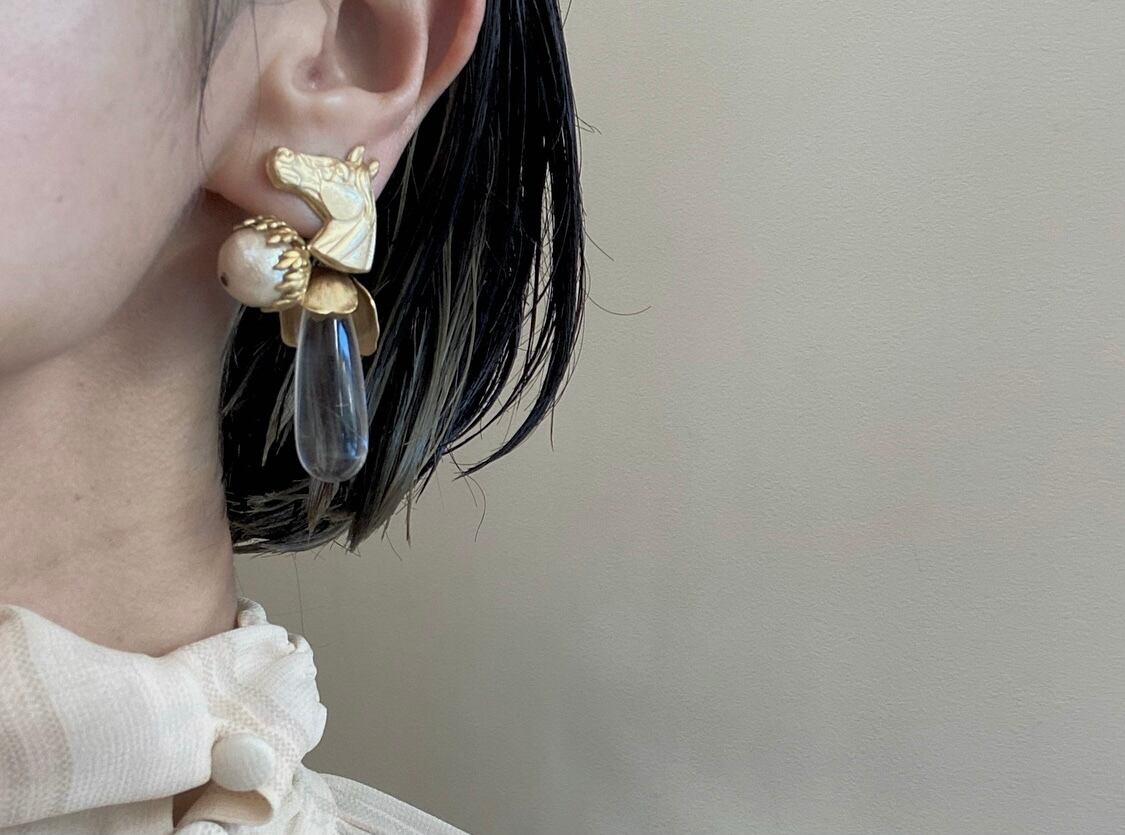 上品でクラシカルな中にも、クリアカラーのパーツがみずみずしくフレッシュな雰囲気を出している一品です。
