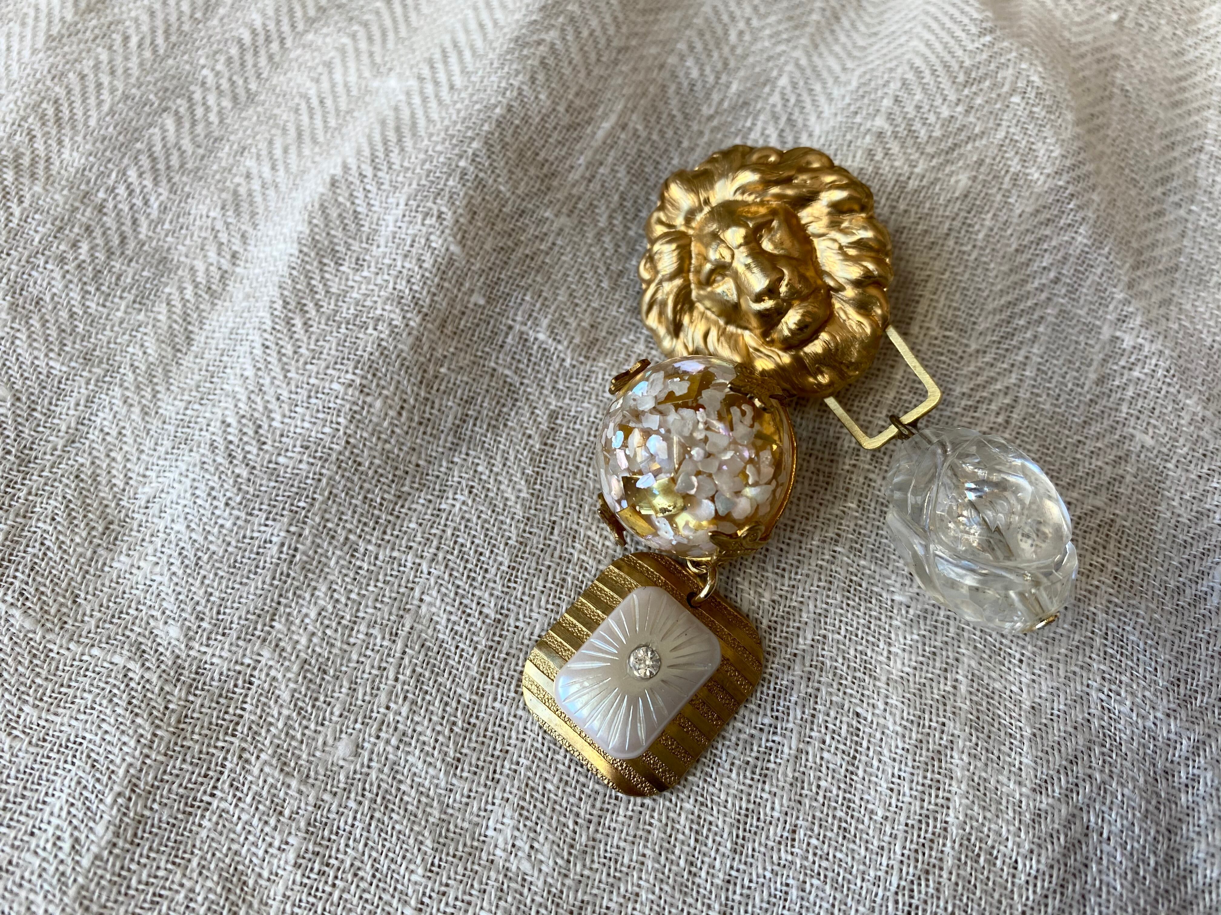 ヴィンテージパーツを組み合わせてアシンメトリーなピアスを作りました。