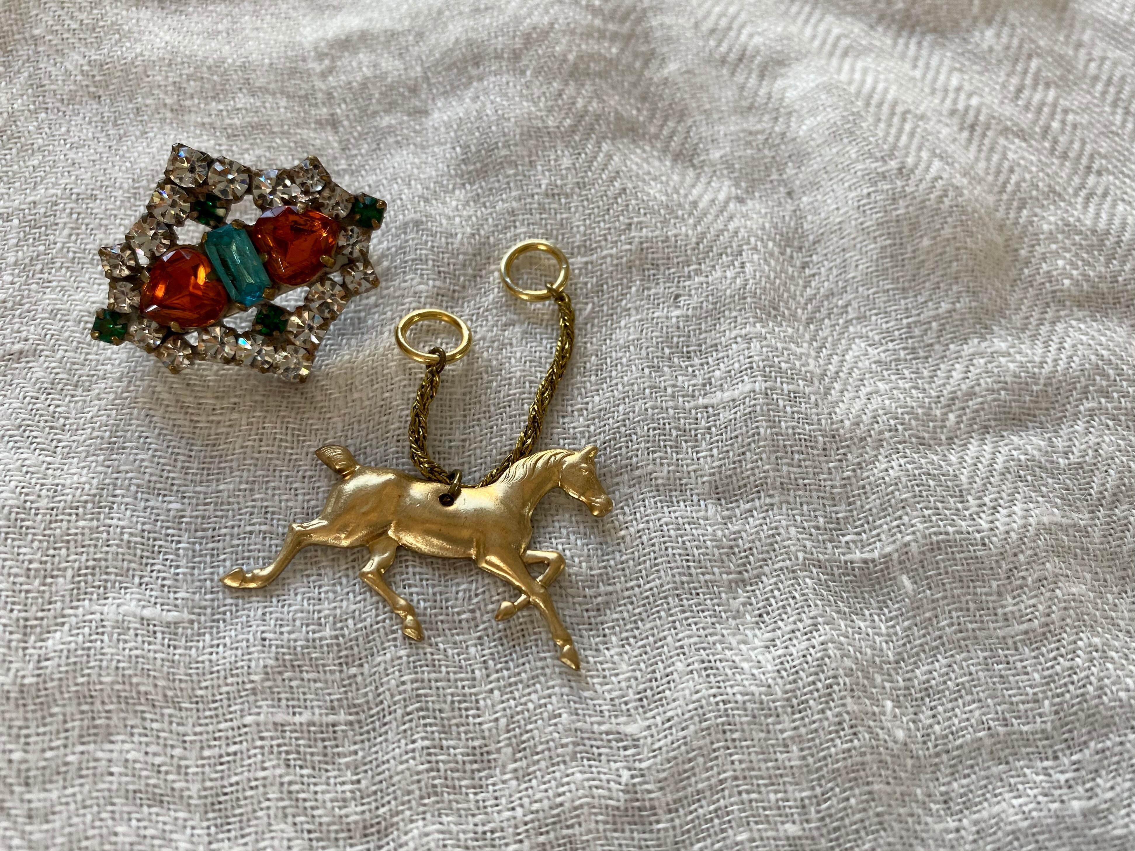 ヴィンテージボタンと真鍮パーツを組み合わせて、ブローチを作りました。