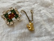 ヴィンテージボタンと真鍮パーツを組み合わせて、ブローチを作りました。