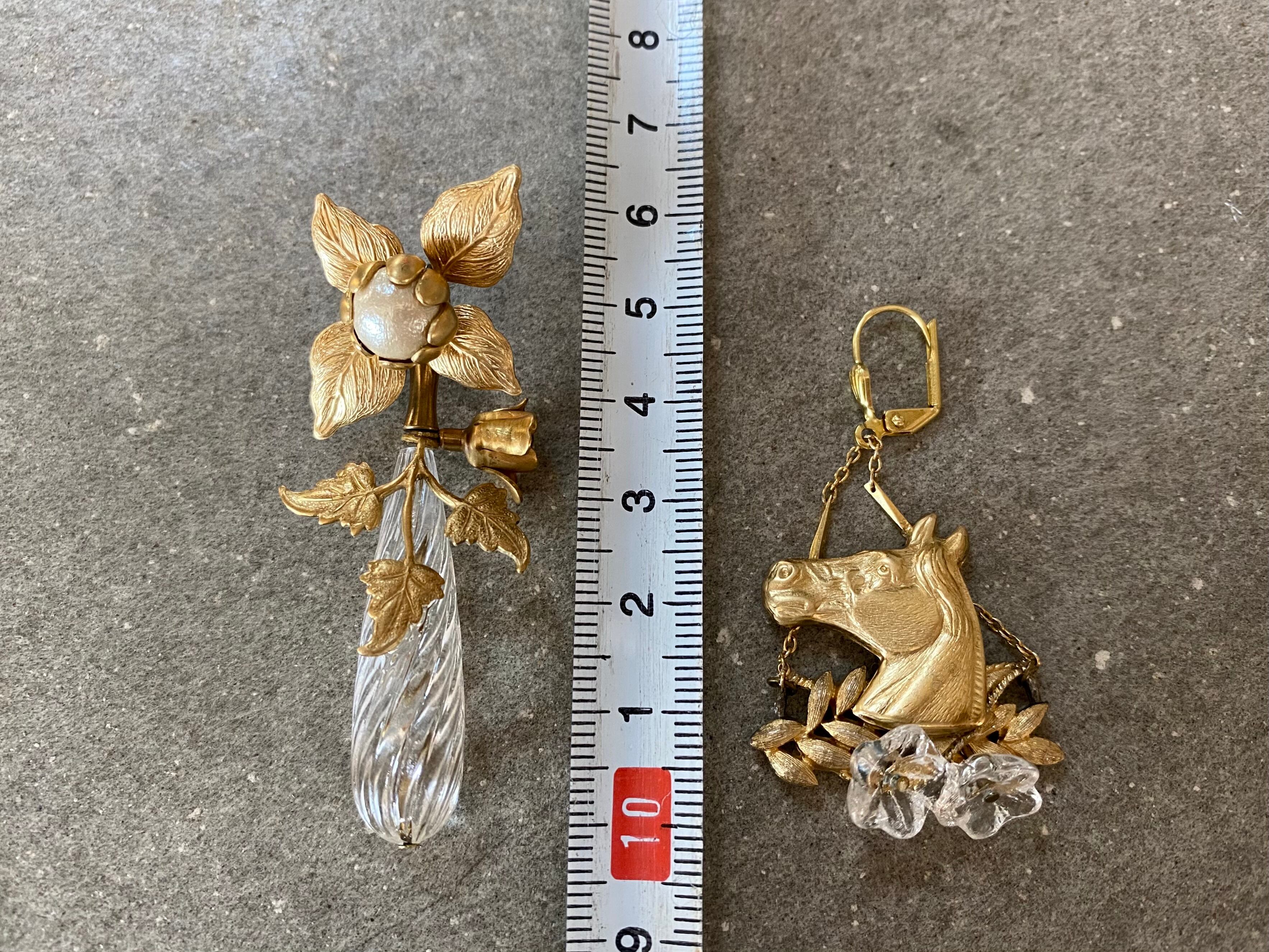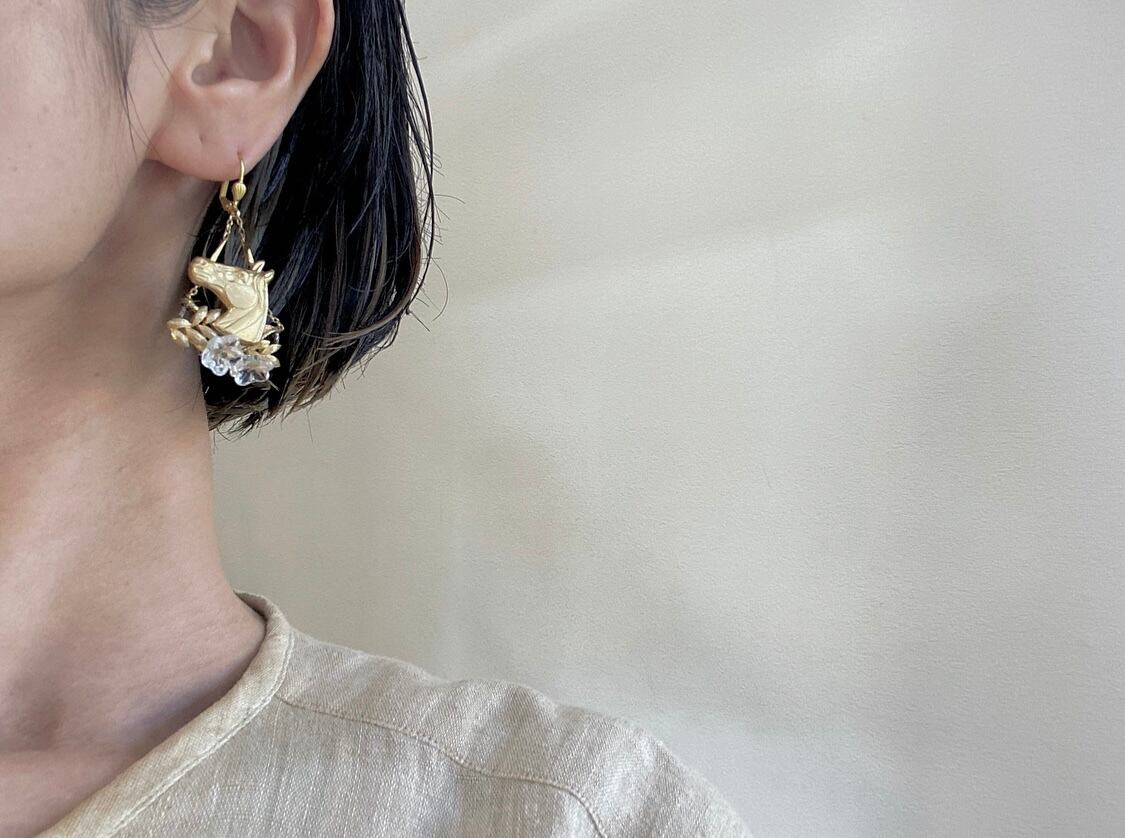 ボタニカルパーツや馬モチーフにクリアビーズを合わせてナチュラルに仕上げました。