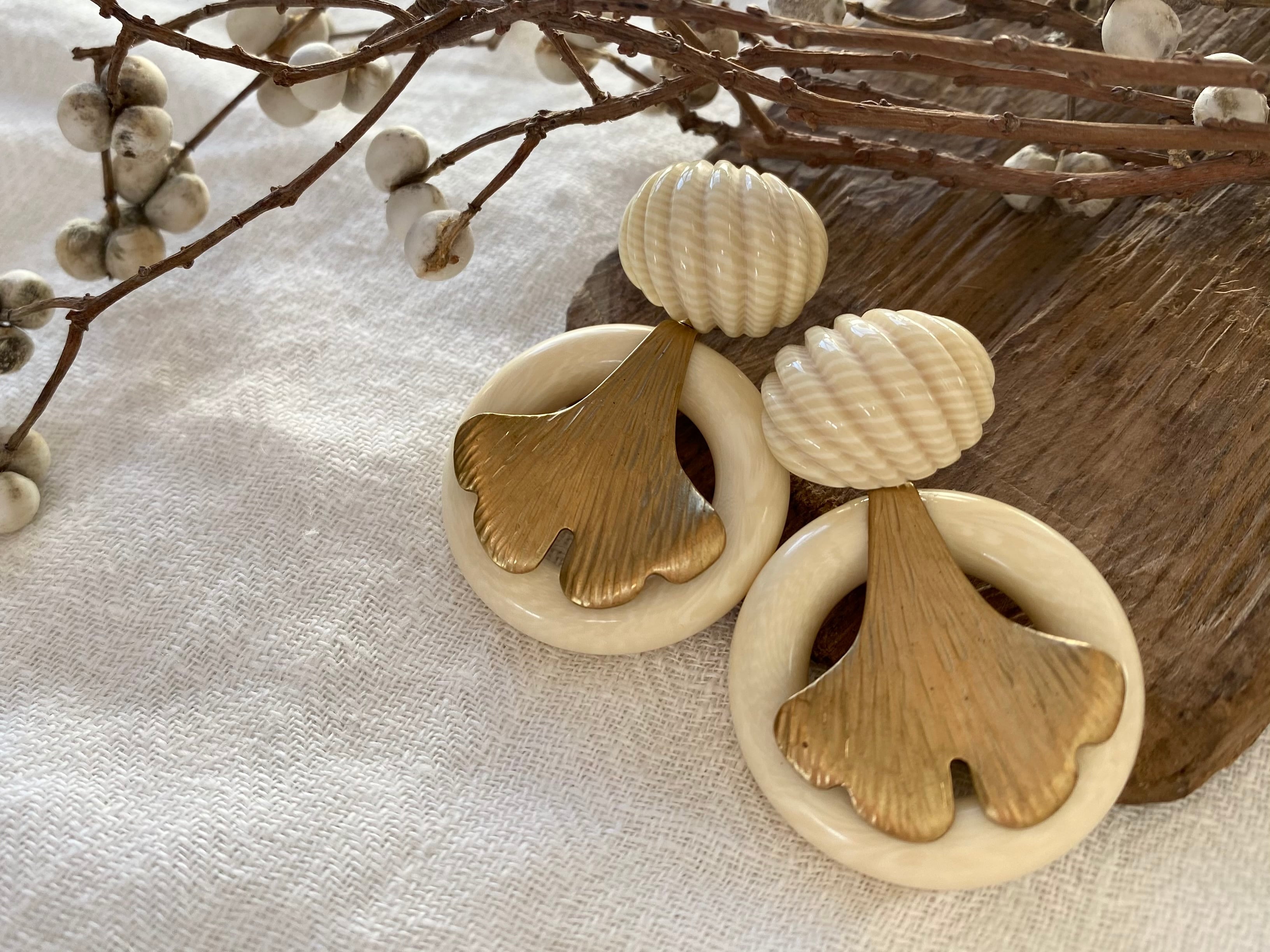 ヴィンテージパーツを組み合わせてピアスを作りました。