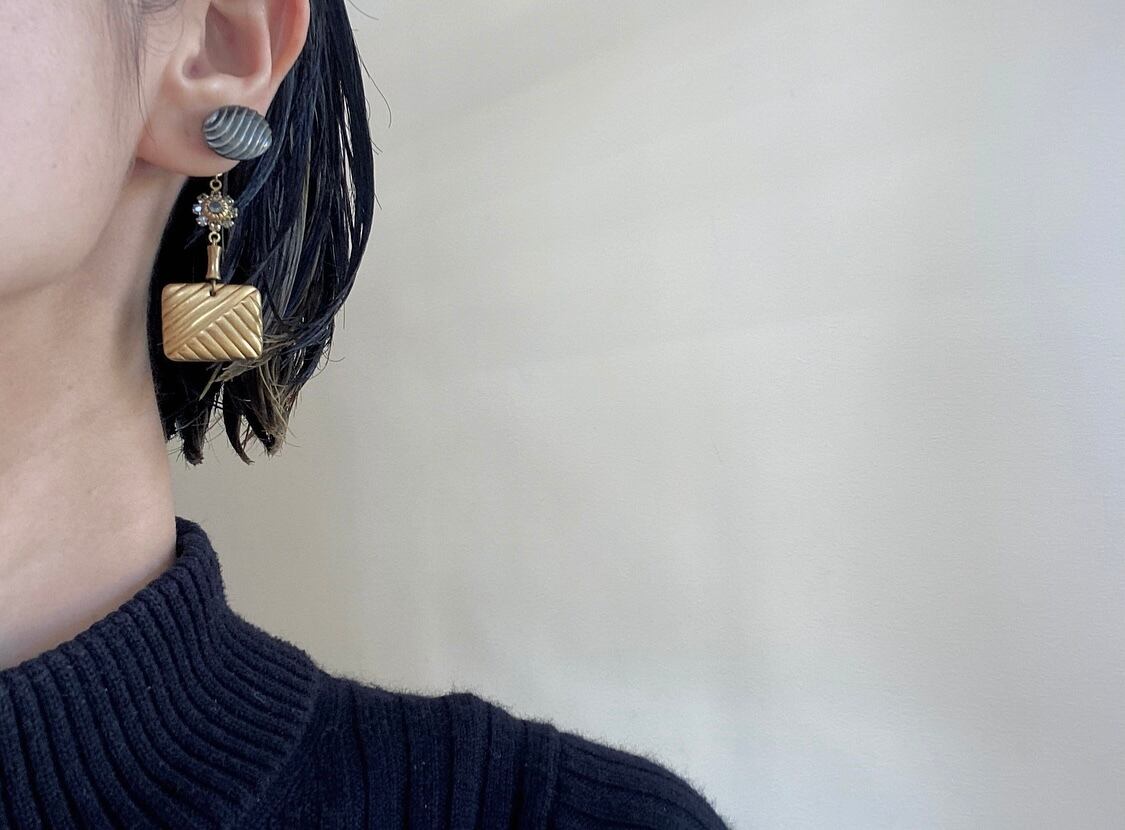 ヴィンテージパーツを組み合わせて、アシンメトリーなピアスを作りました。