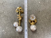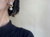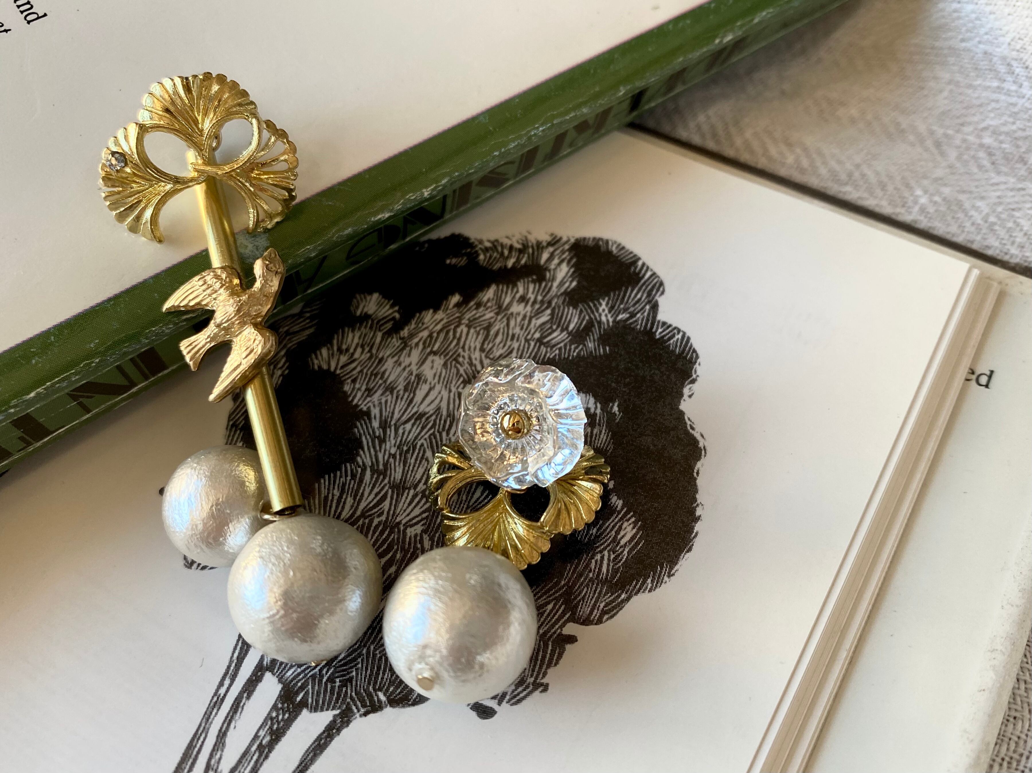 ヴィンテージパーツを組み合わせてアシンメトリーなピアスを作りました。