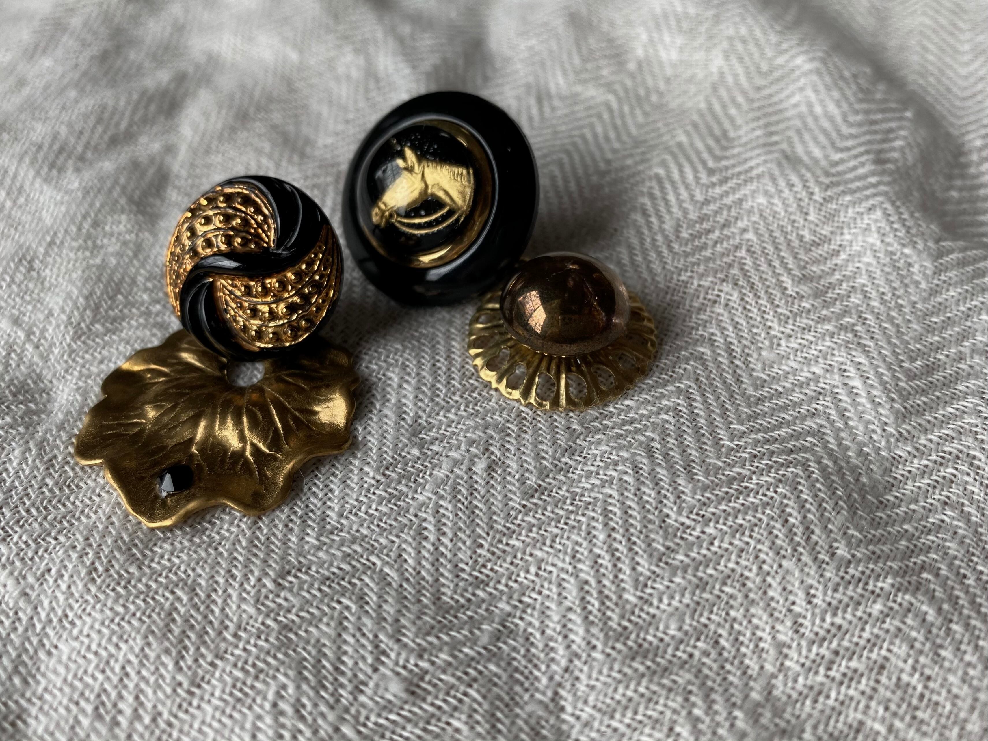 シックなヴィンテージボタンや落ち着いた色味のガラスドームが大人っぽい一品です。