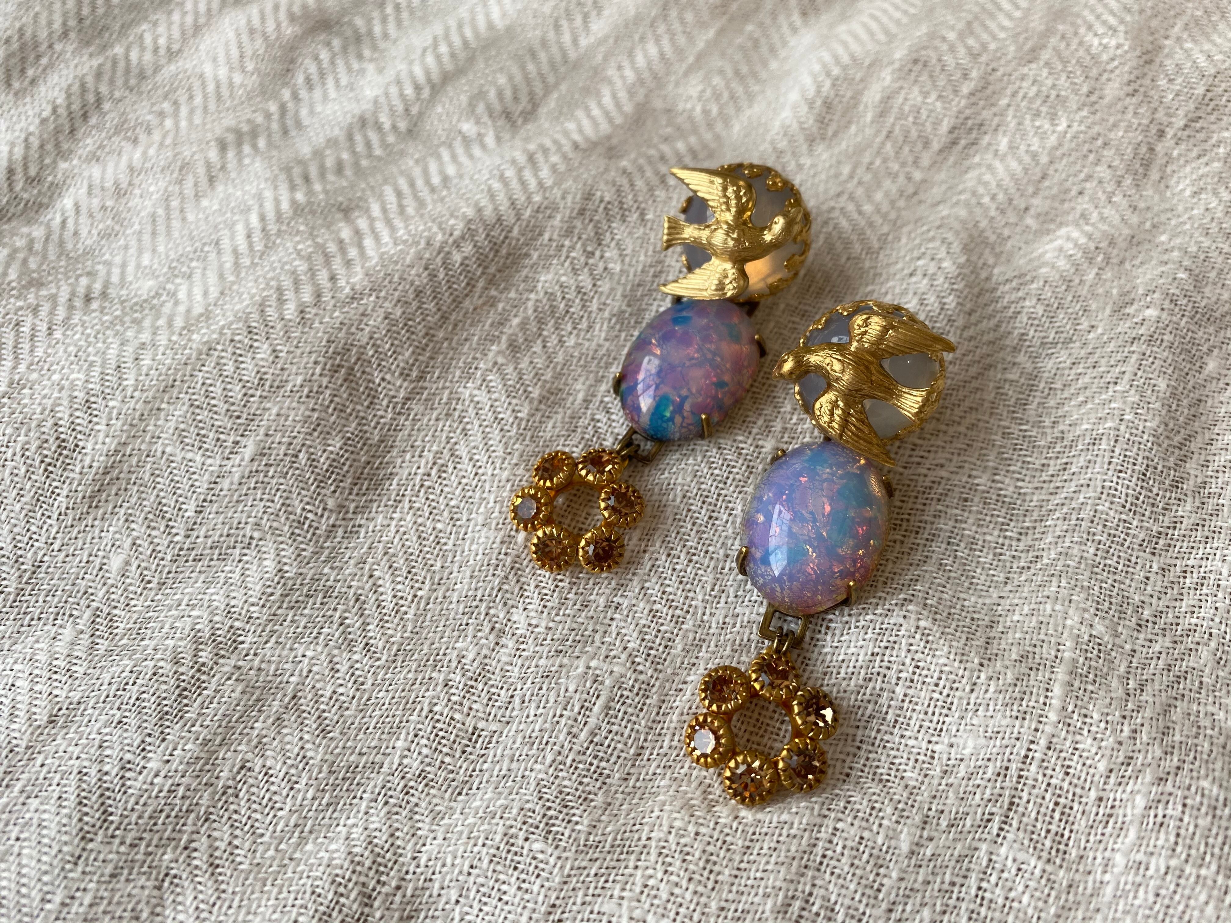 ヴィンテージパーツを組み合わせてピアスを作りました。