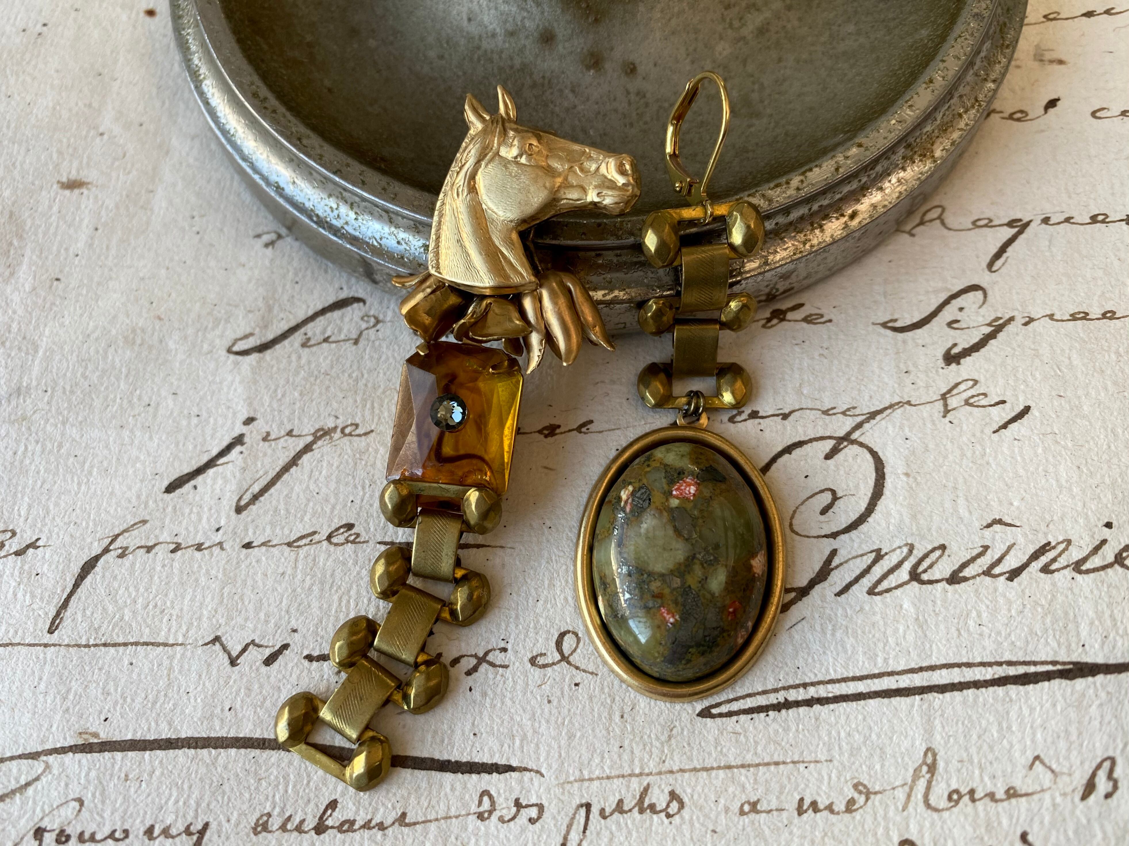 アースカラーの天然石と、ホースヘッドが好相性で、個性がありながらもシックで落ち着いた雰囲気のデザインです。