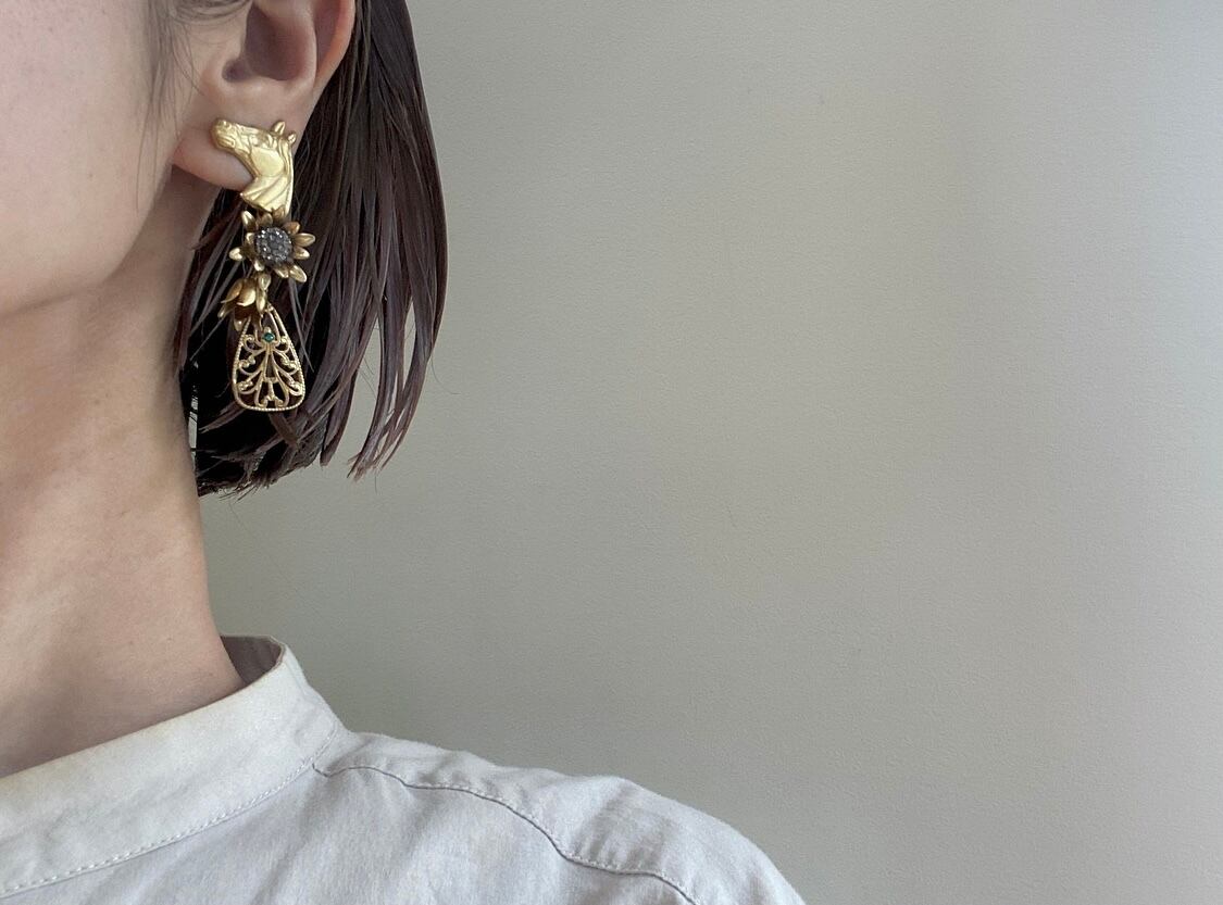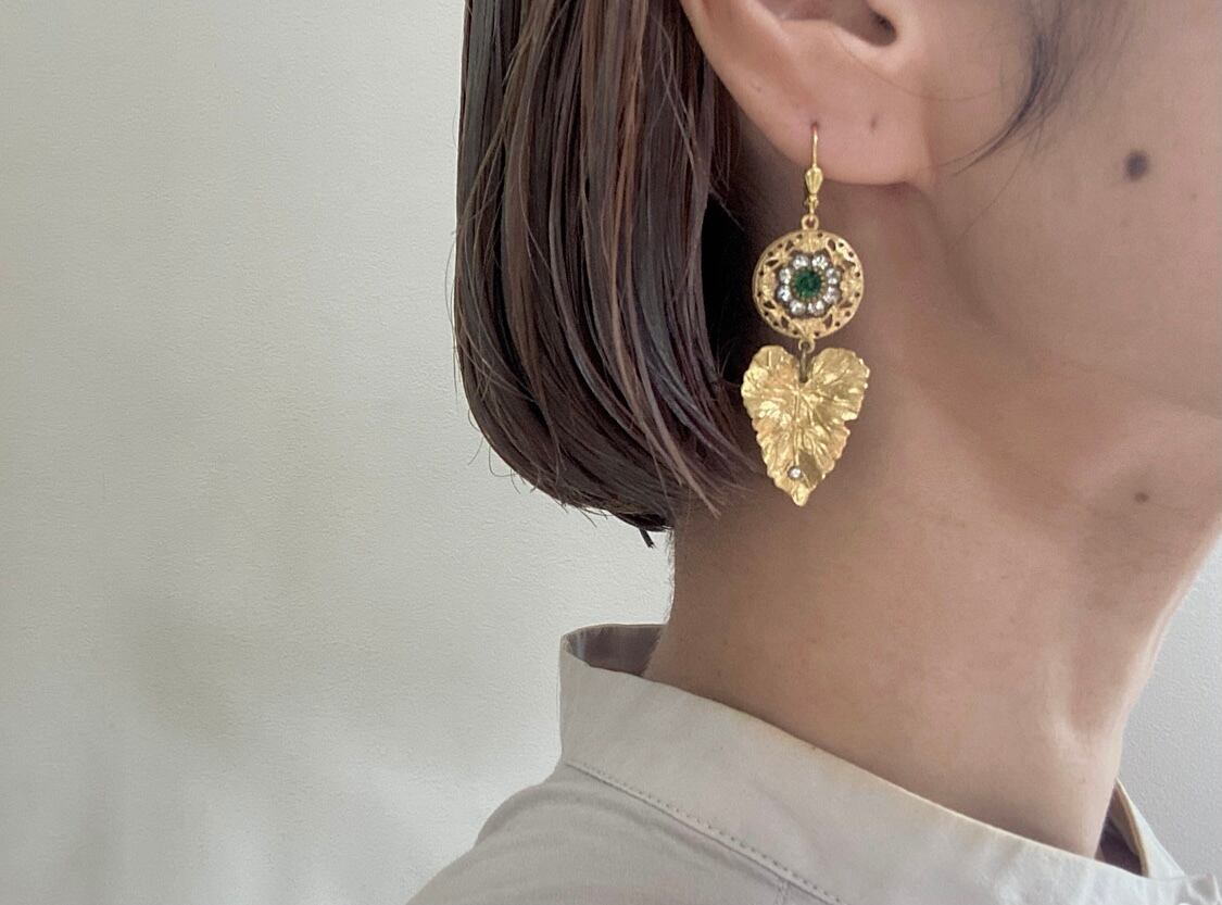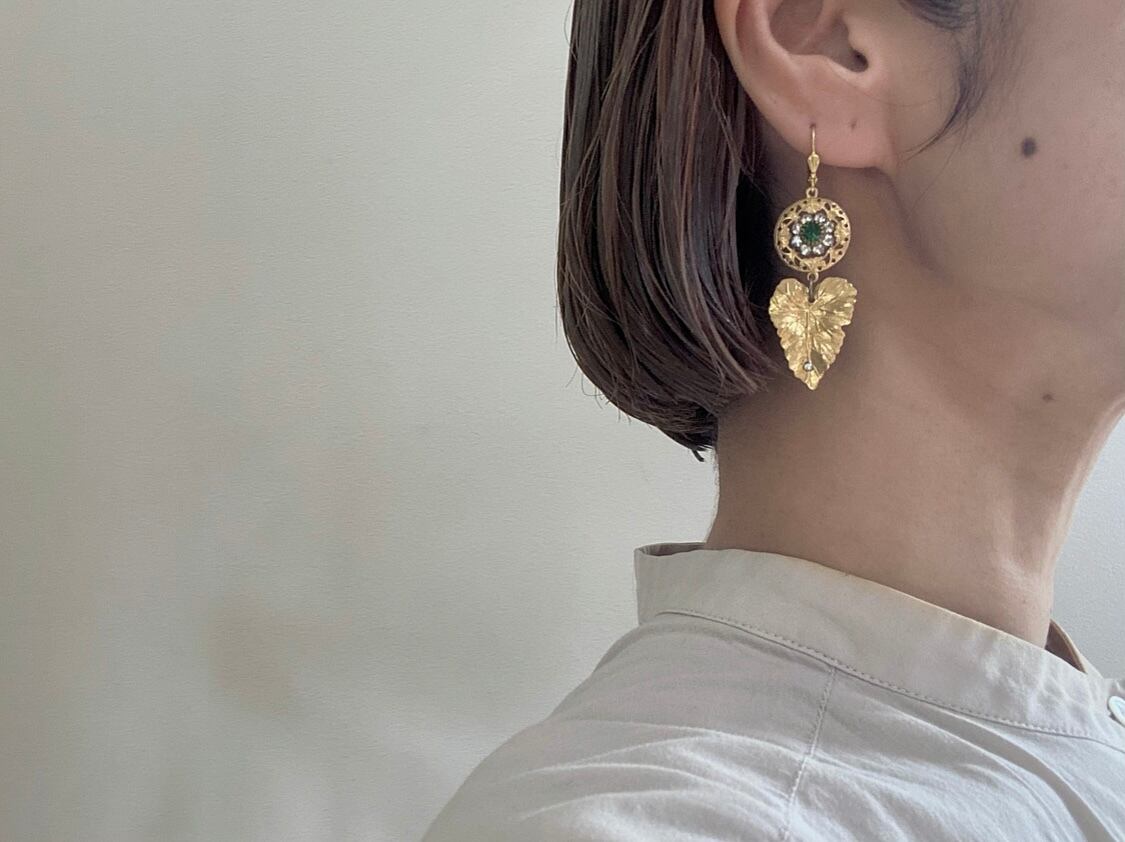 繊細なカットワークの施されたミリアムハスケルのパーツにボタニカルパーツを合わせました。