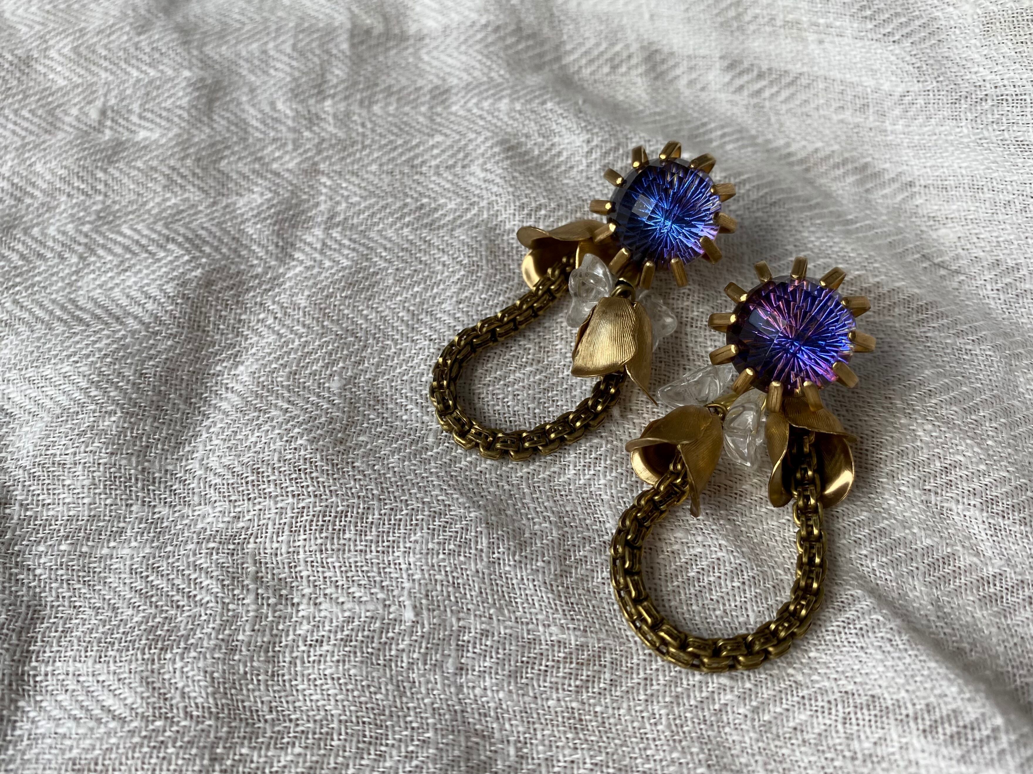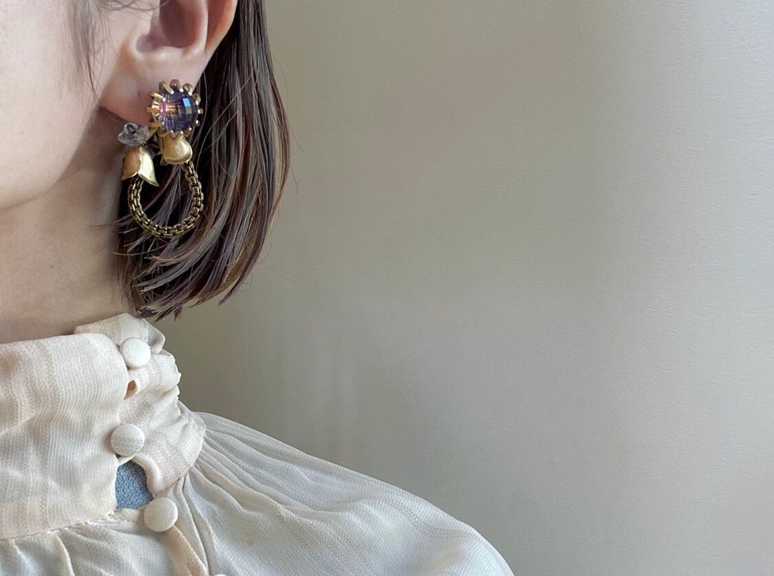 ヴィンテージパーツを組み合わせてピアスを作りました。