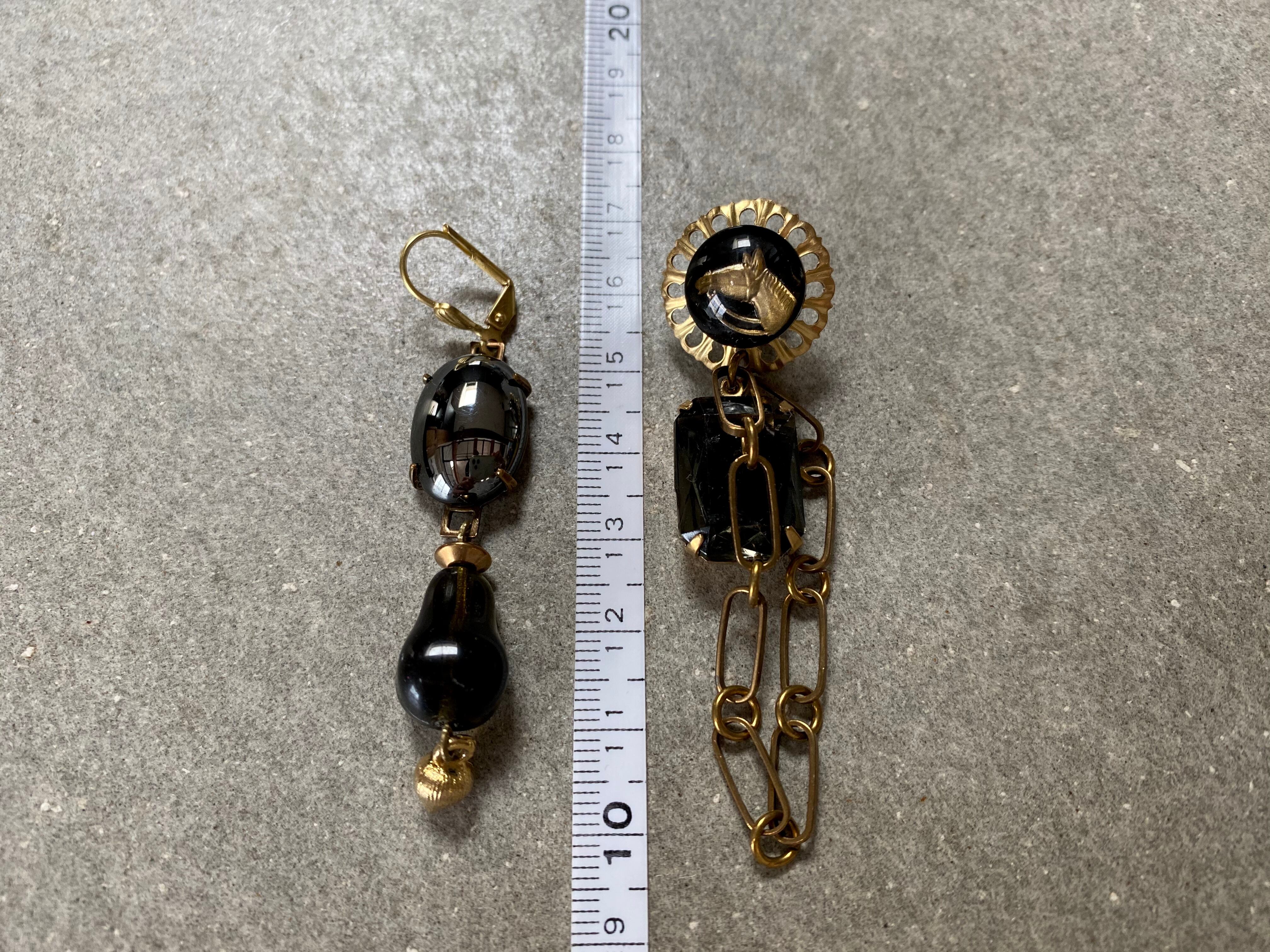 ヴィンテージパーツを組み合わせてアシンメトリーなピアスを作りました。