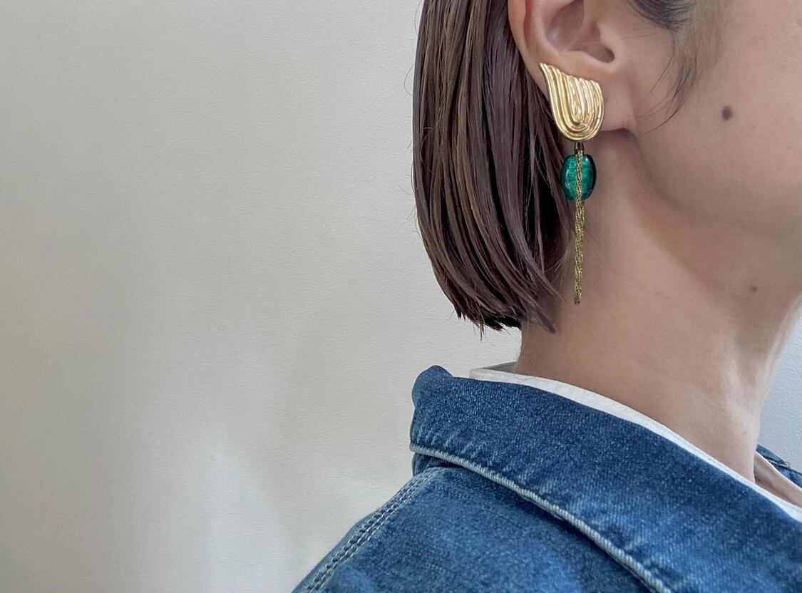 印象的なヴィンテージボタンに負けない個性のパーツを組み合わせて、女性らしさがありつつもカッコ良い雰囲気に仕上げました。