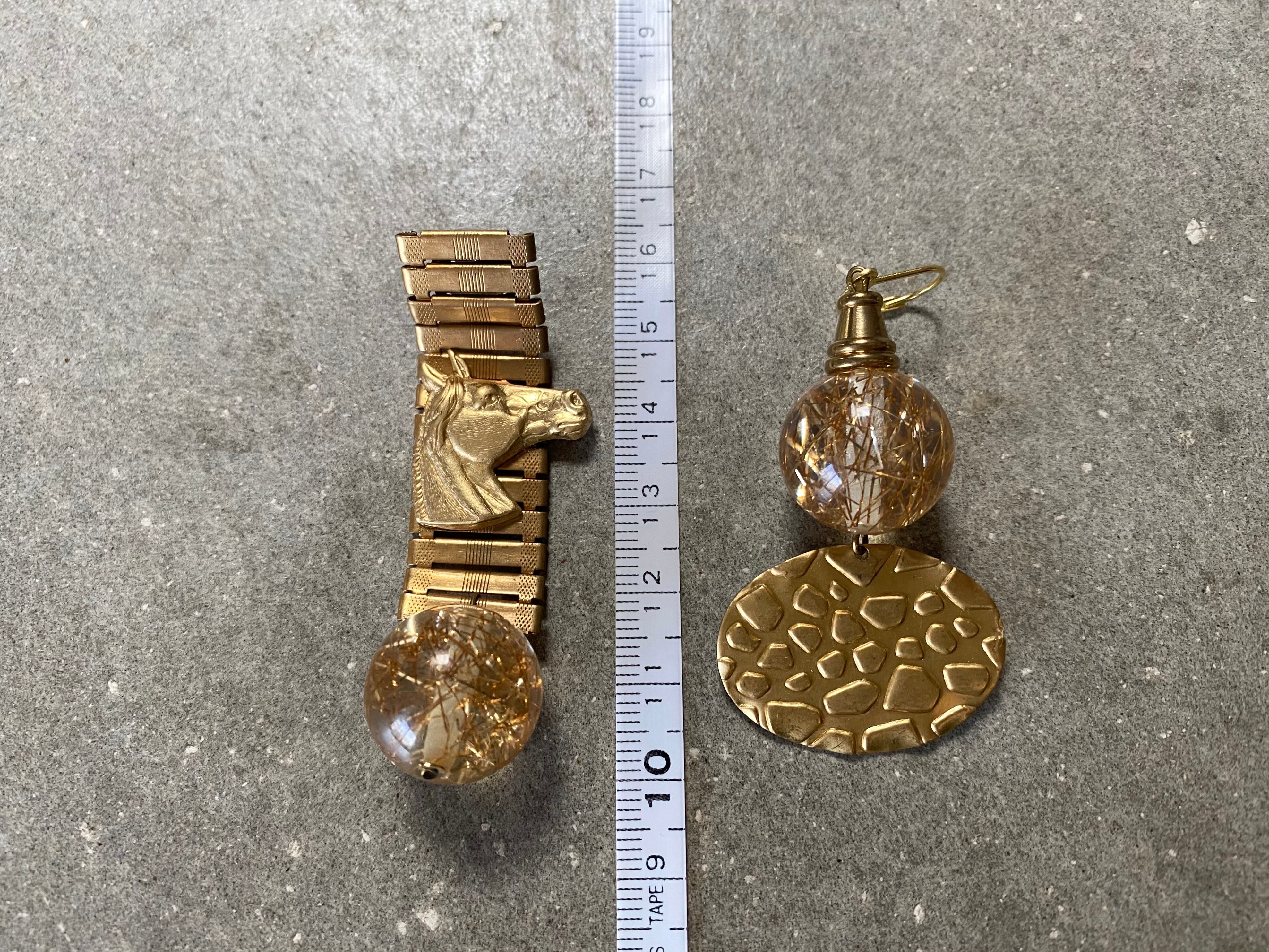 ヴィンテージパーツを組み合わせて、ピアスを作りました。