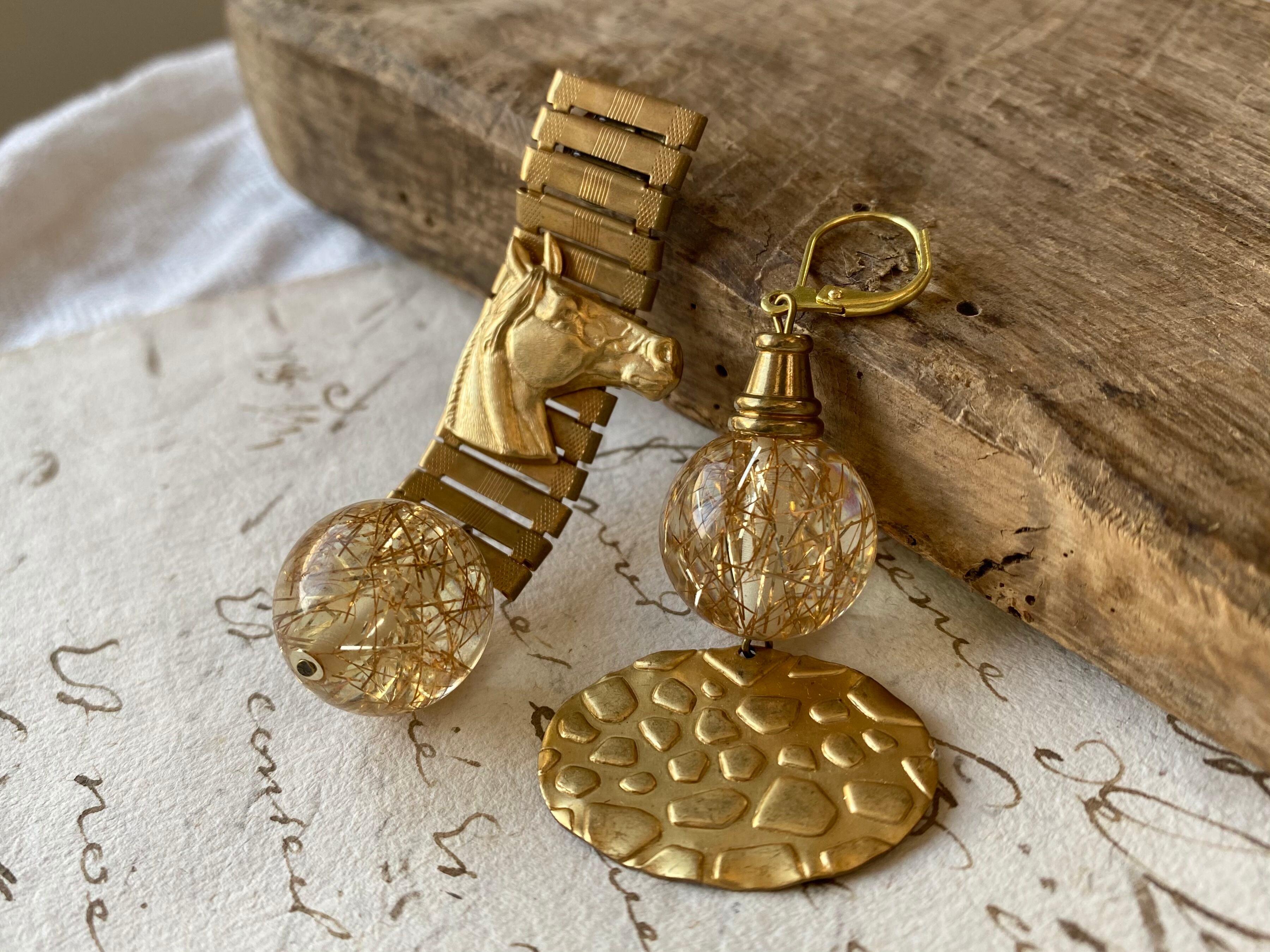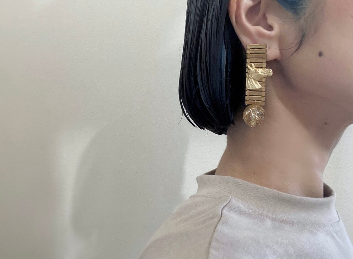 パーツのひとつひとつが個性的で存在感がありますが、ゴールド一色にまとめて統一感を持たせました。