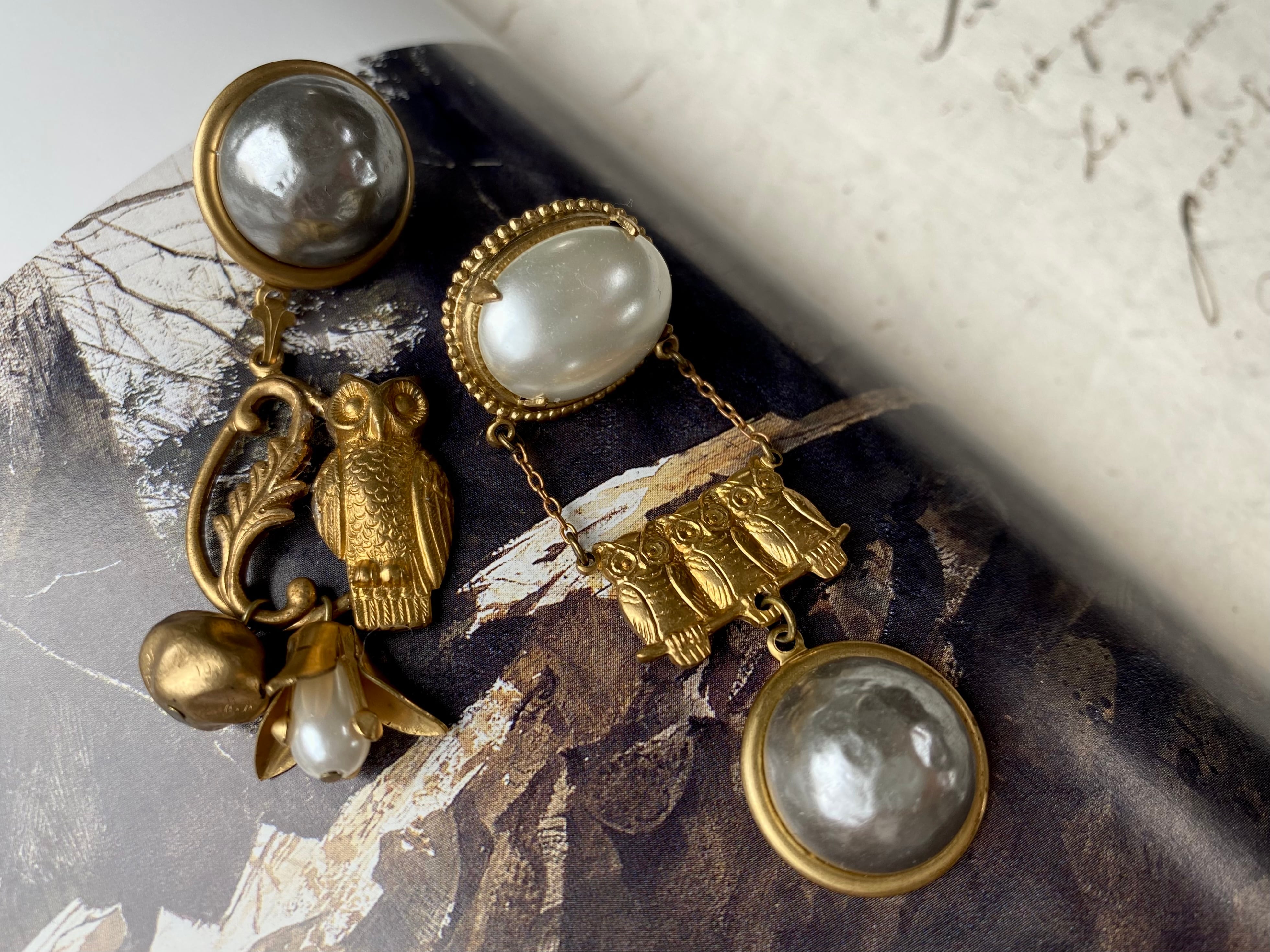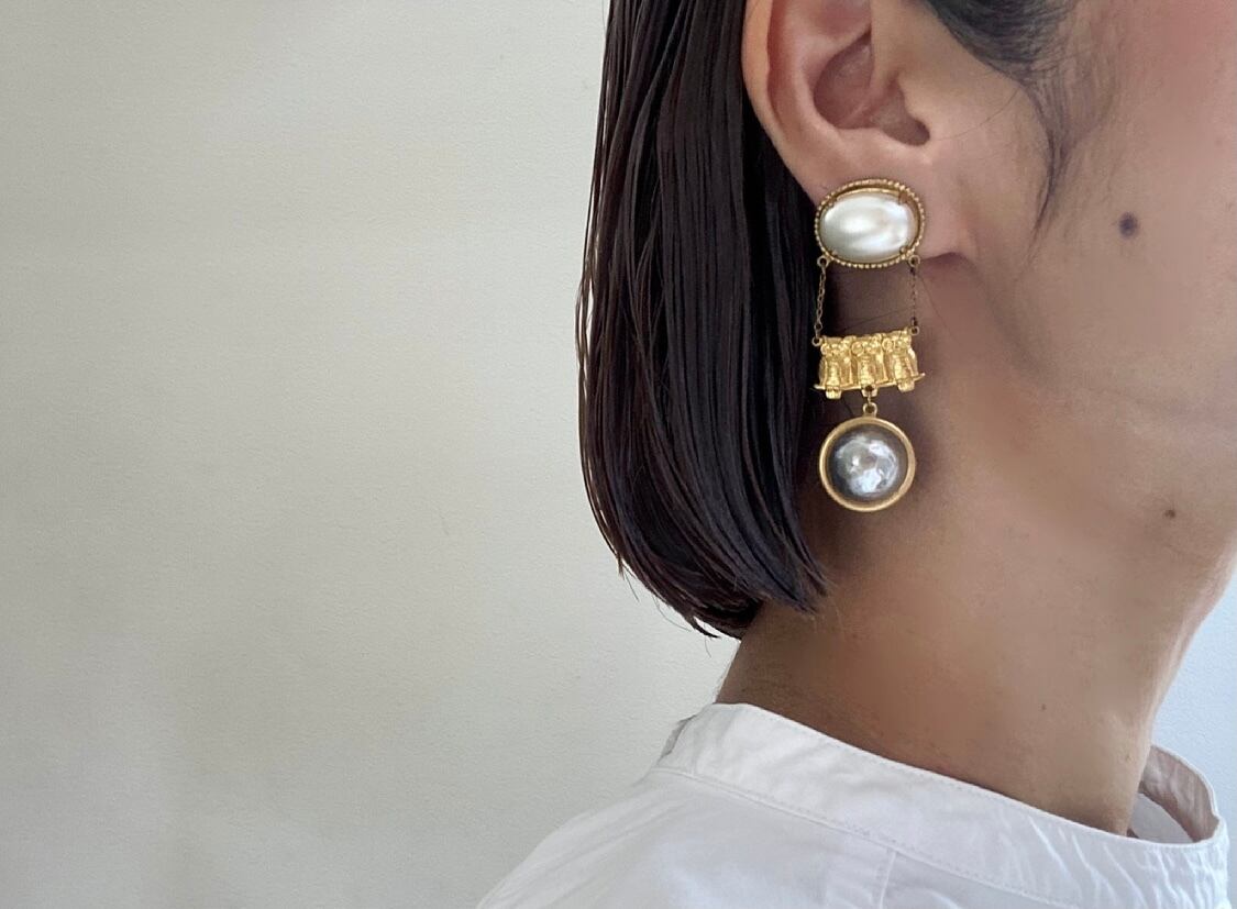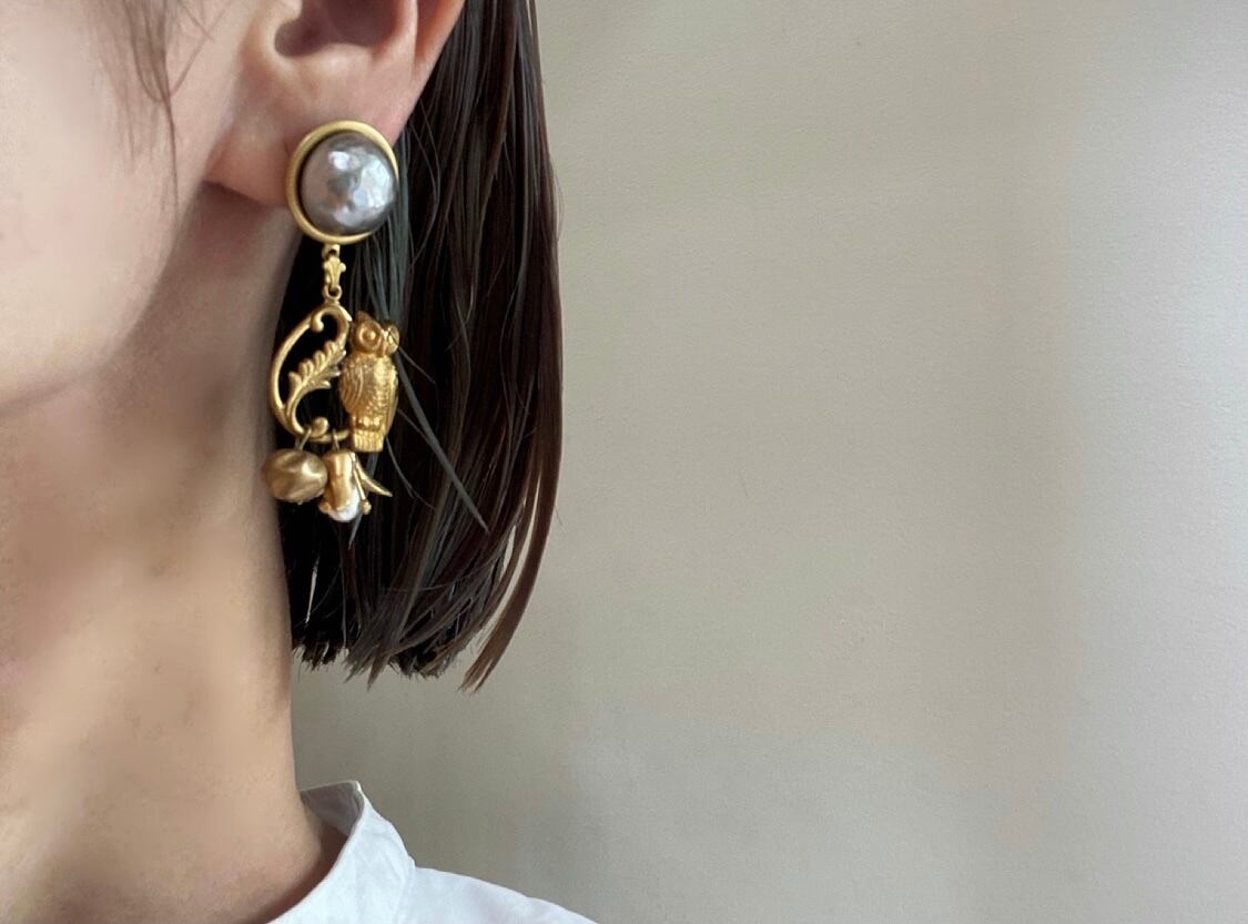 ヴィンテージパーツを組み合わせてピアスを作りました。