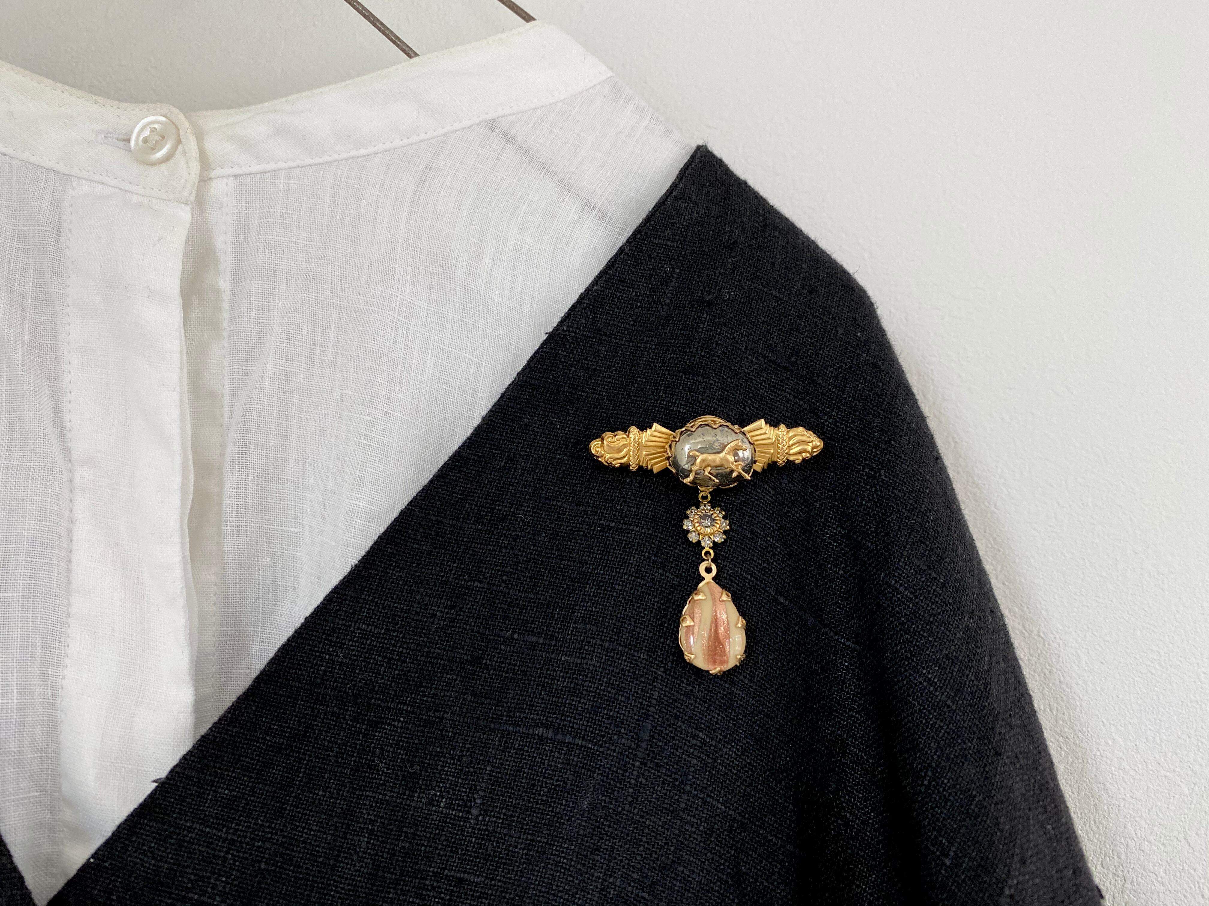 小さな真鍮の馬が遊び心をくすぐるアクセントになり、上品で、それでいてちょっと個性的な大人アクセサリーに仕上げました。
