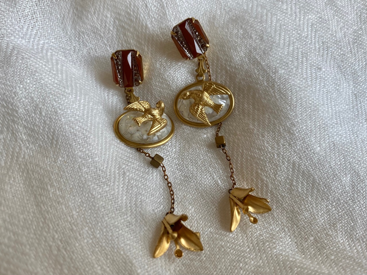 ヴィンテージパーツを組み合わせてピアスを作りました。