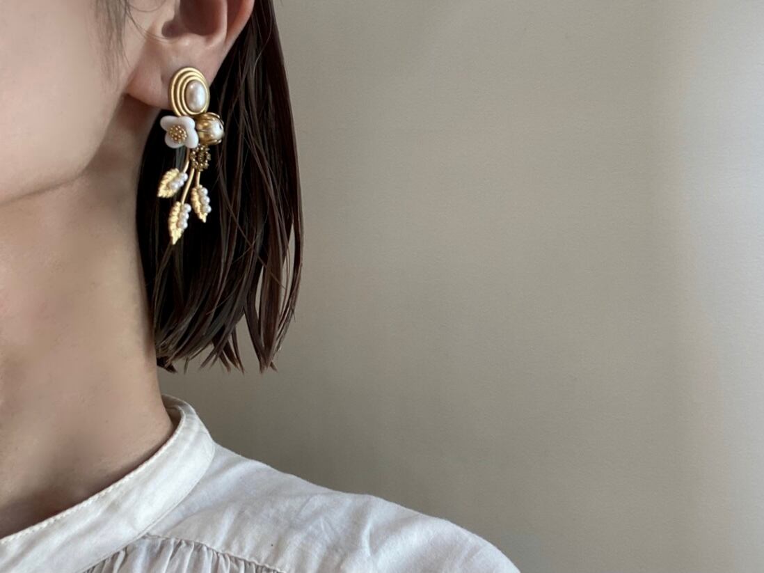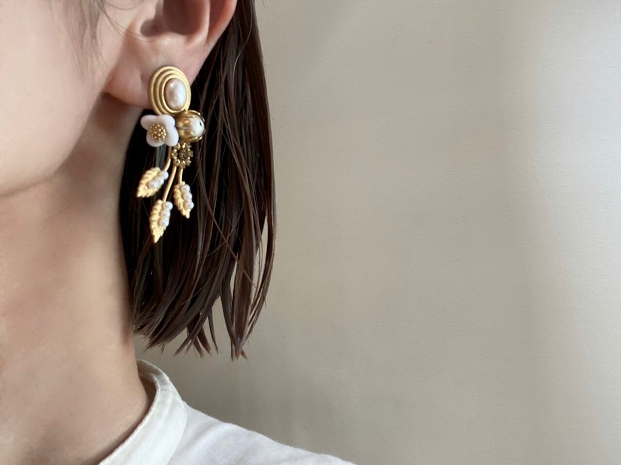 ヴィンテージパーツを組み合わせてピアスを作りました。