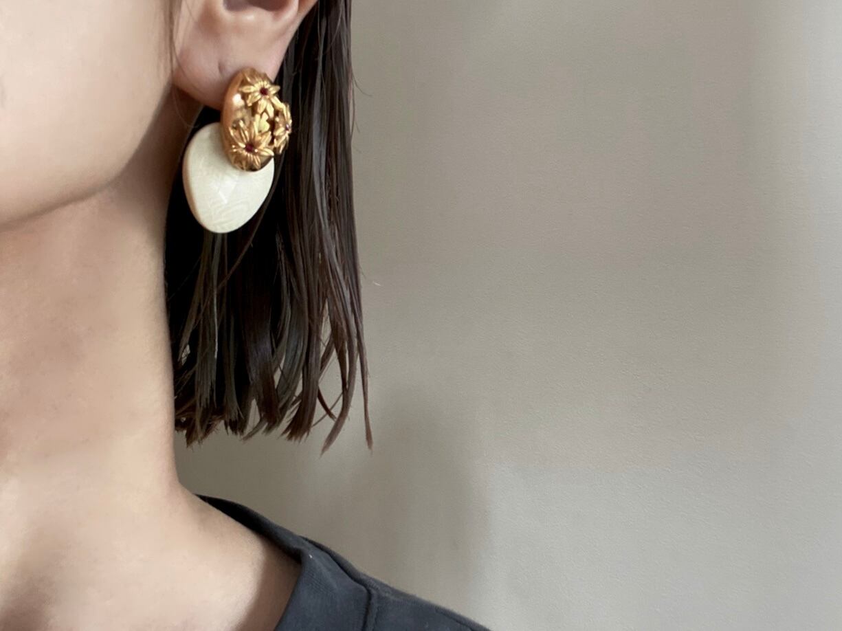 ヴィンテージパーツを組み合わせてピアスを作りました。