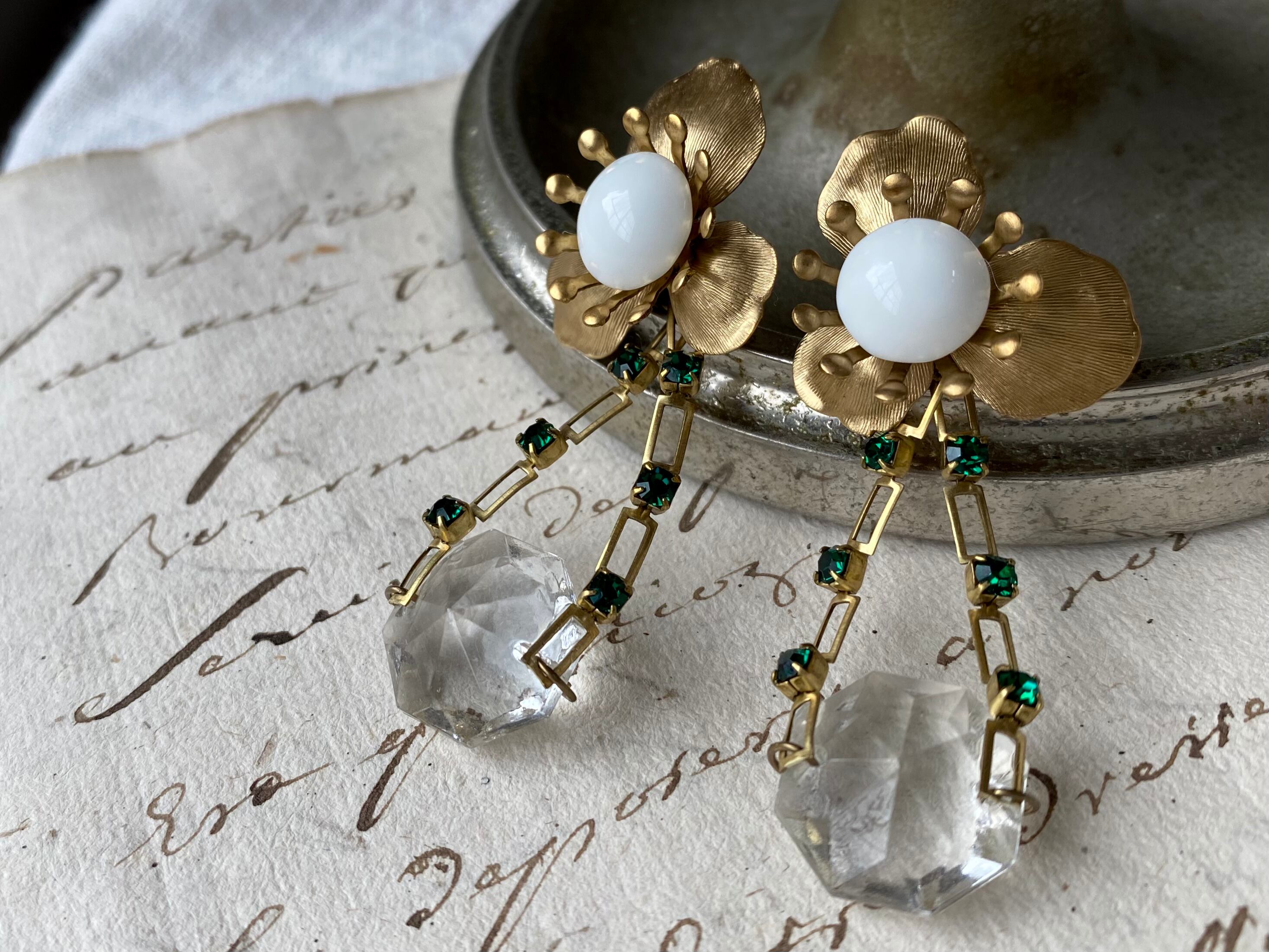 ヴィンテージパーツを組み合わせてピアスを作りました。