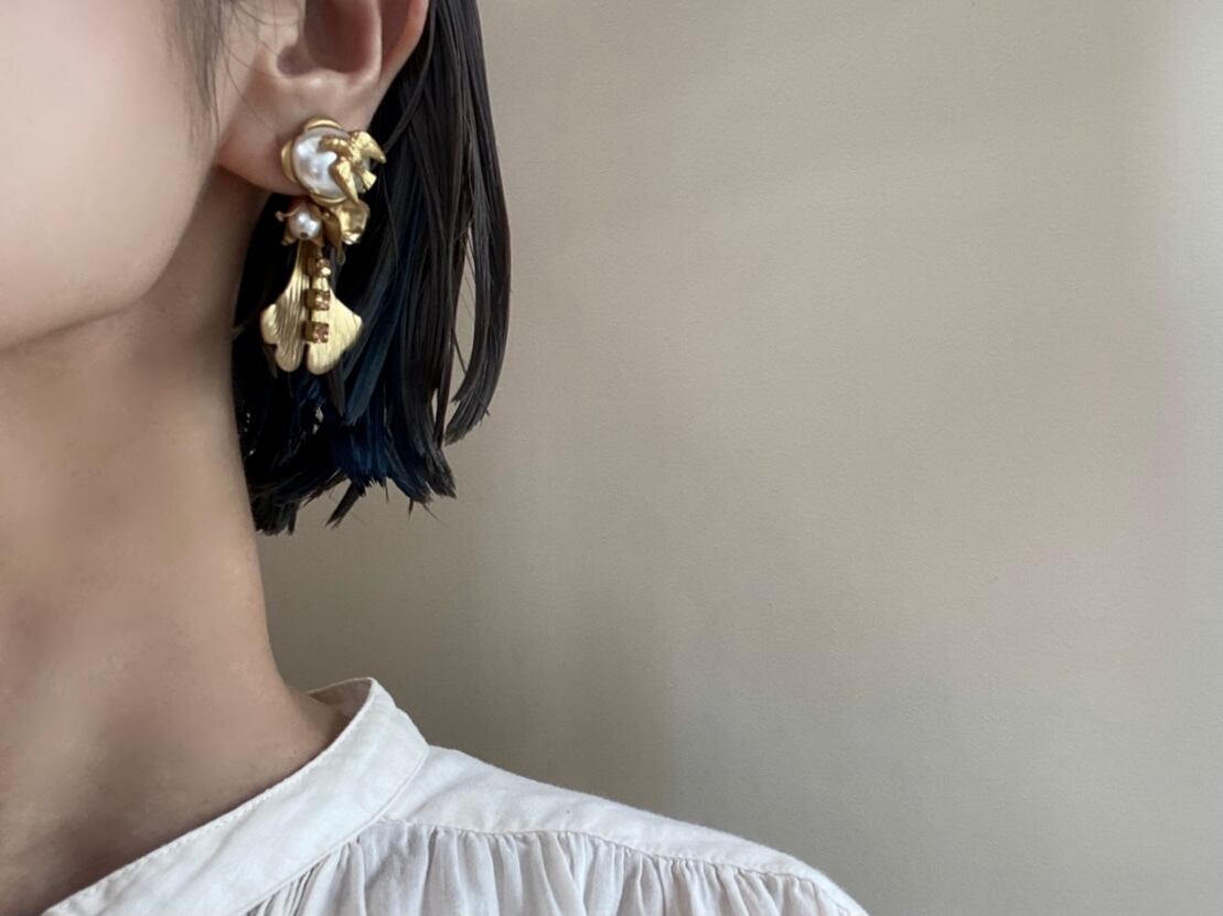 ヴィンテージパーツを組み合わせてピアスを作りました。