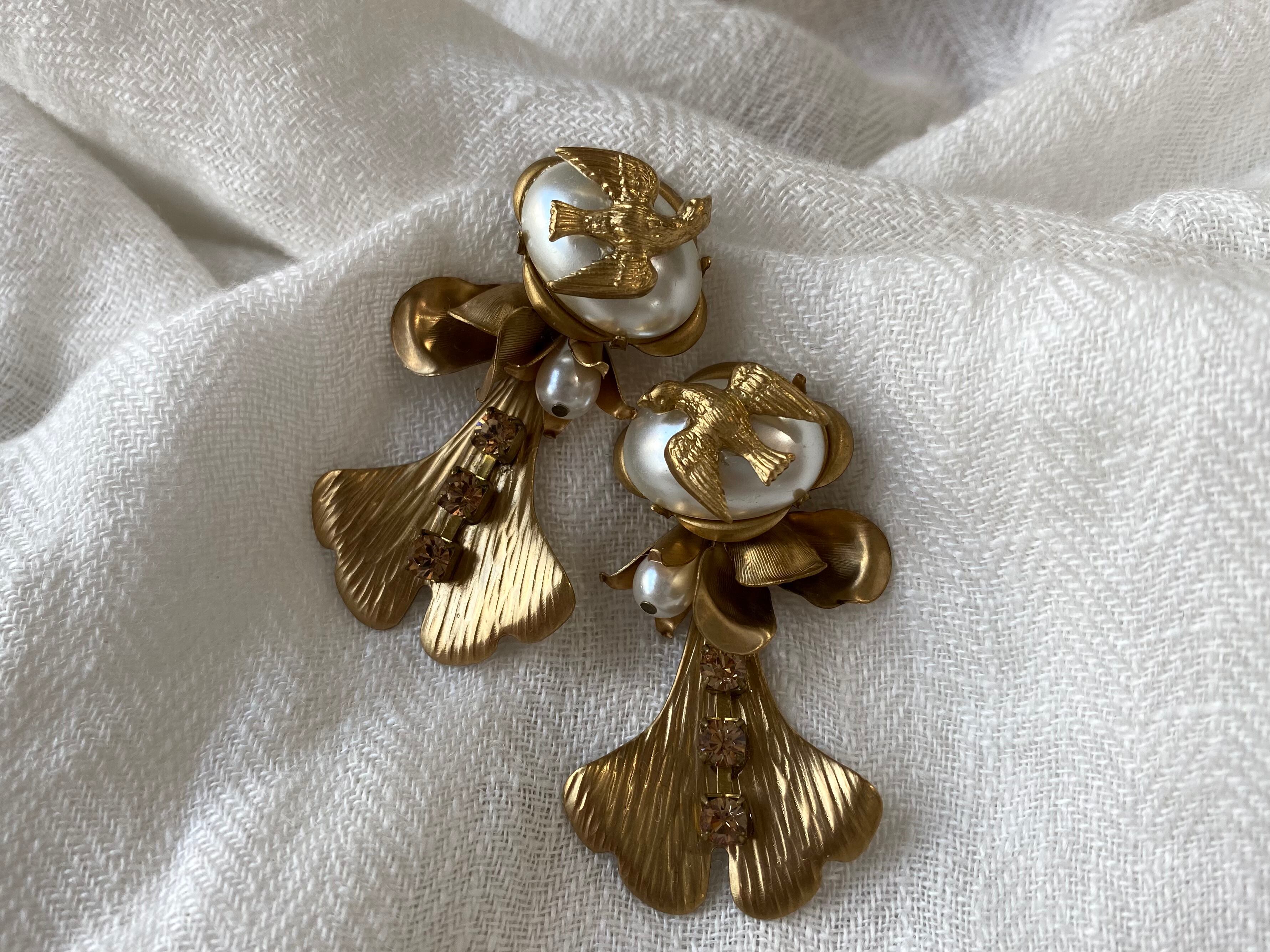 様々なボタニカルパーツにパールを合わせ、さらにミリアムハスケルのドーブやスワロフスキーで飾りました。