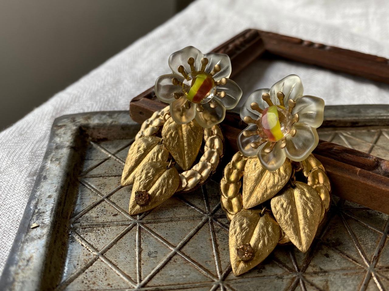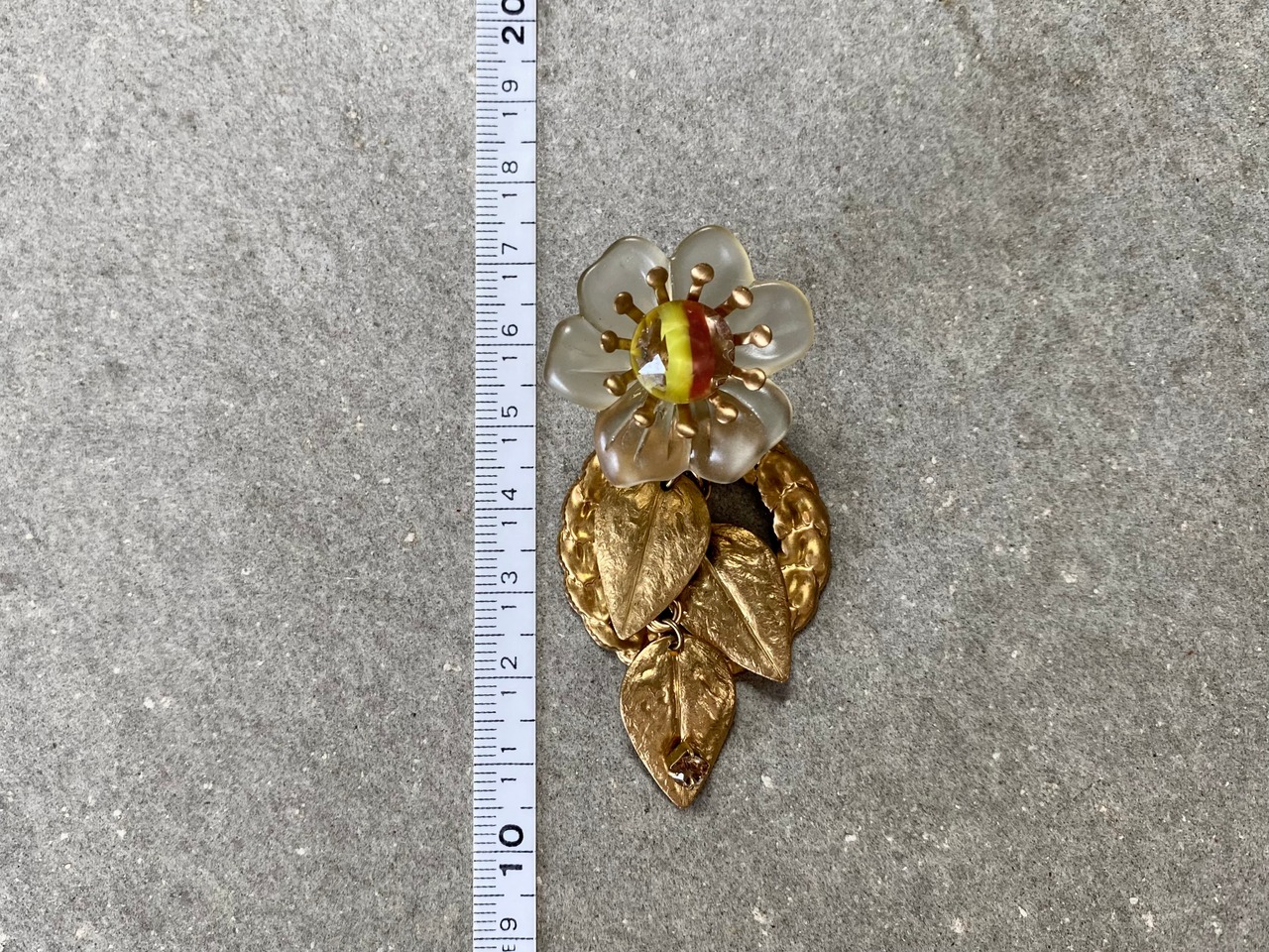 ドイツヴィンテージのお花や、中央に置かれたガラスカボションが、レトロな雰囲気です。