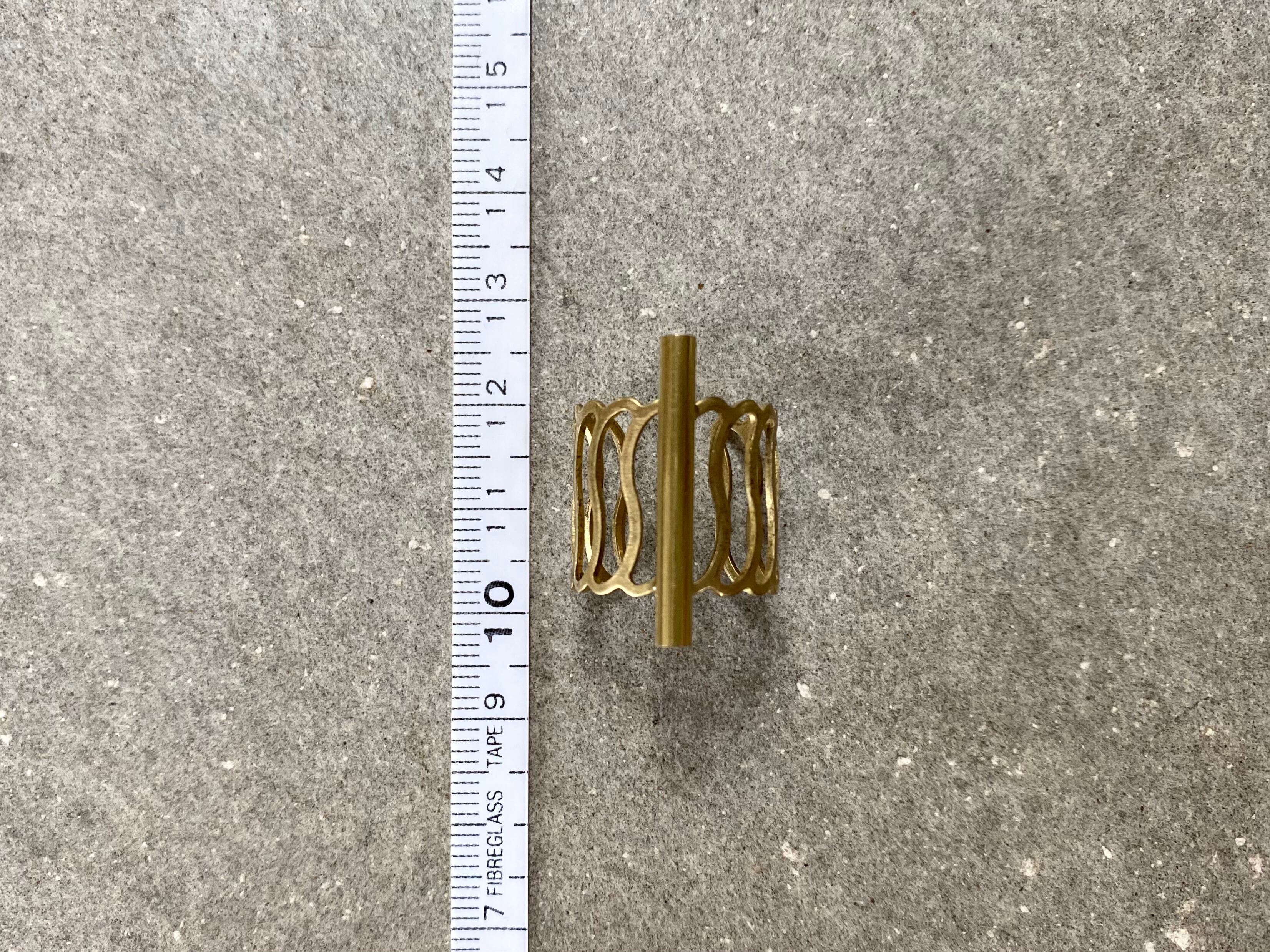 波の連なったリングに直線の真鍮パイプを真っ直ぐに引き、アクセントを持たせました。
