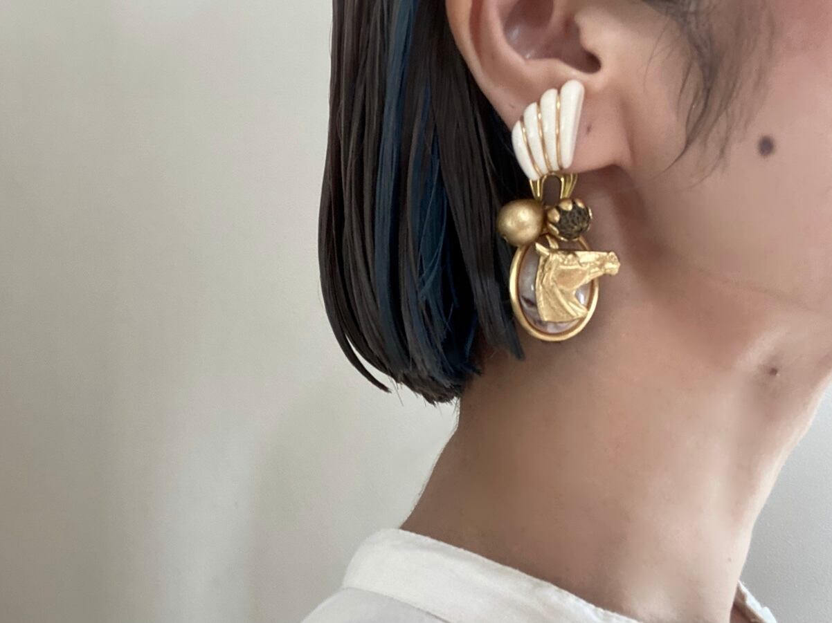 ヴィンテージパーツを組み合わせてピアスを作りました。