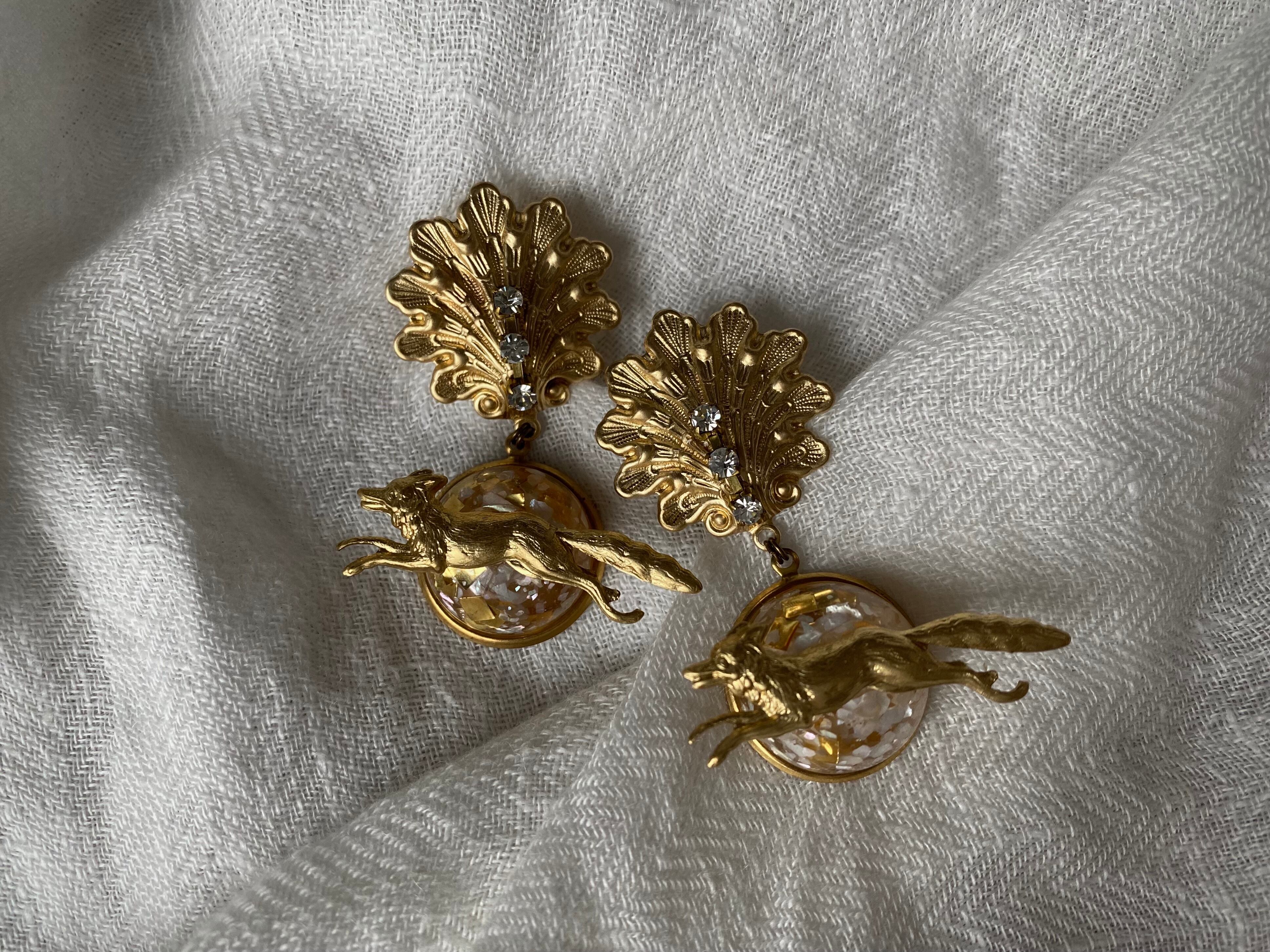 ヴィンテージパーツを組み合わせてピアスを作りました。