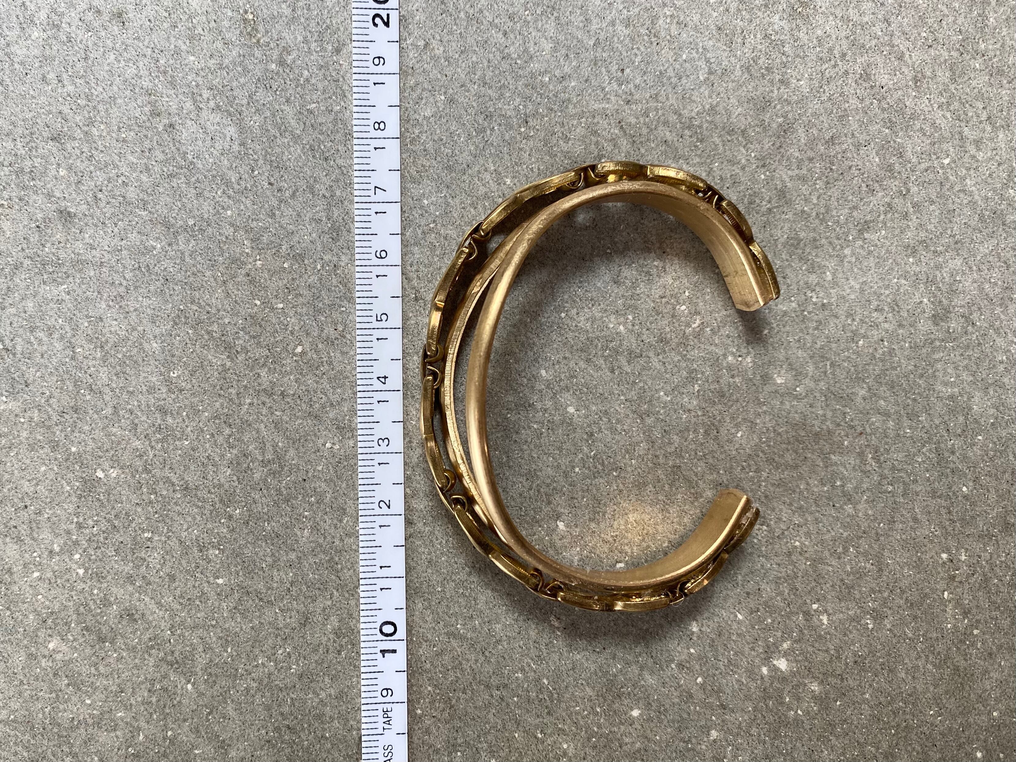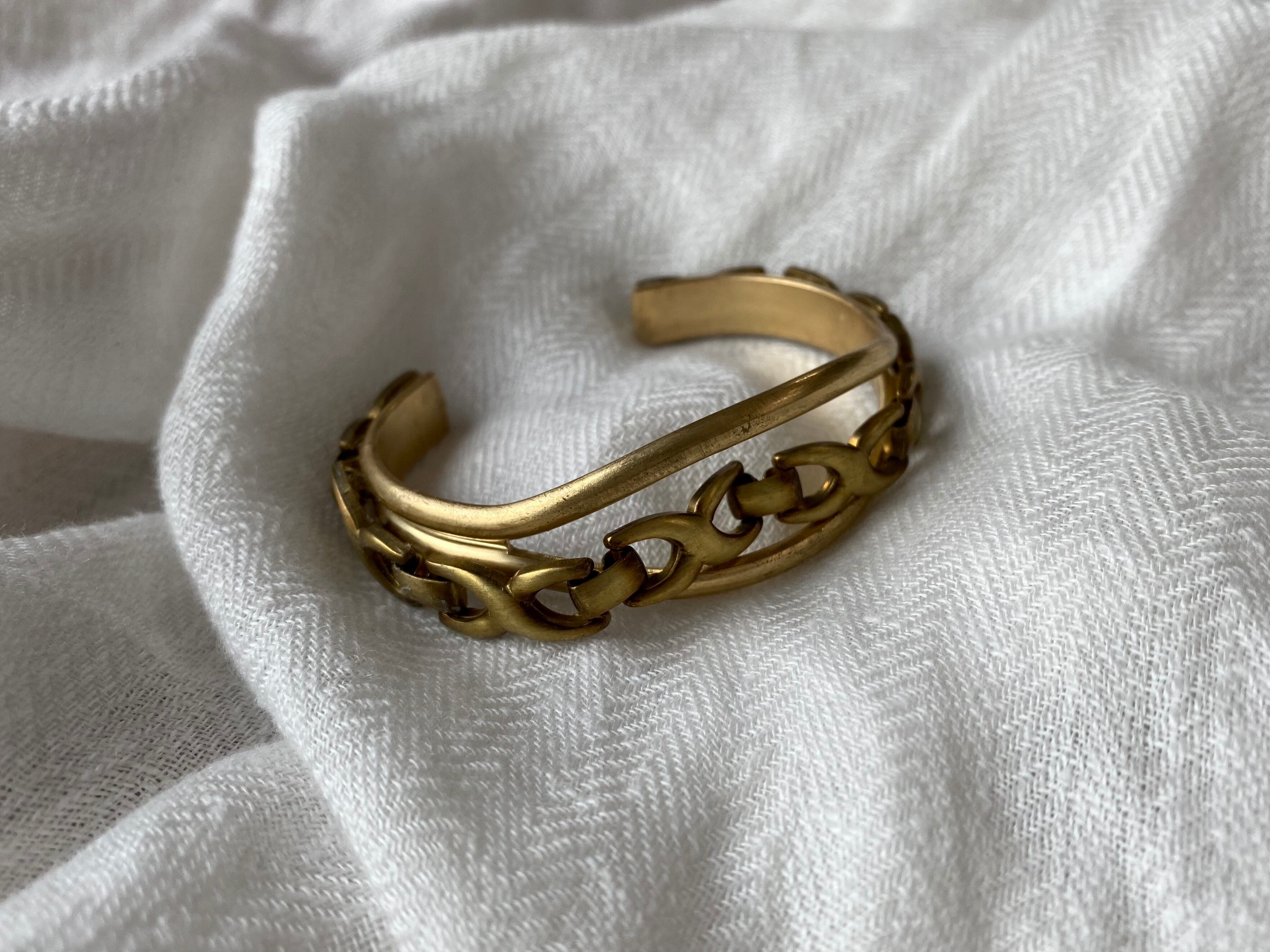 真鍮バングルにヴィンテージチェーンを合わせ、3連風に仕立てました。