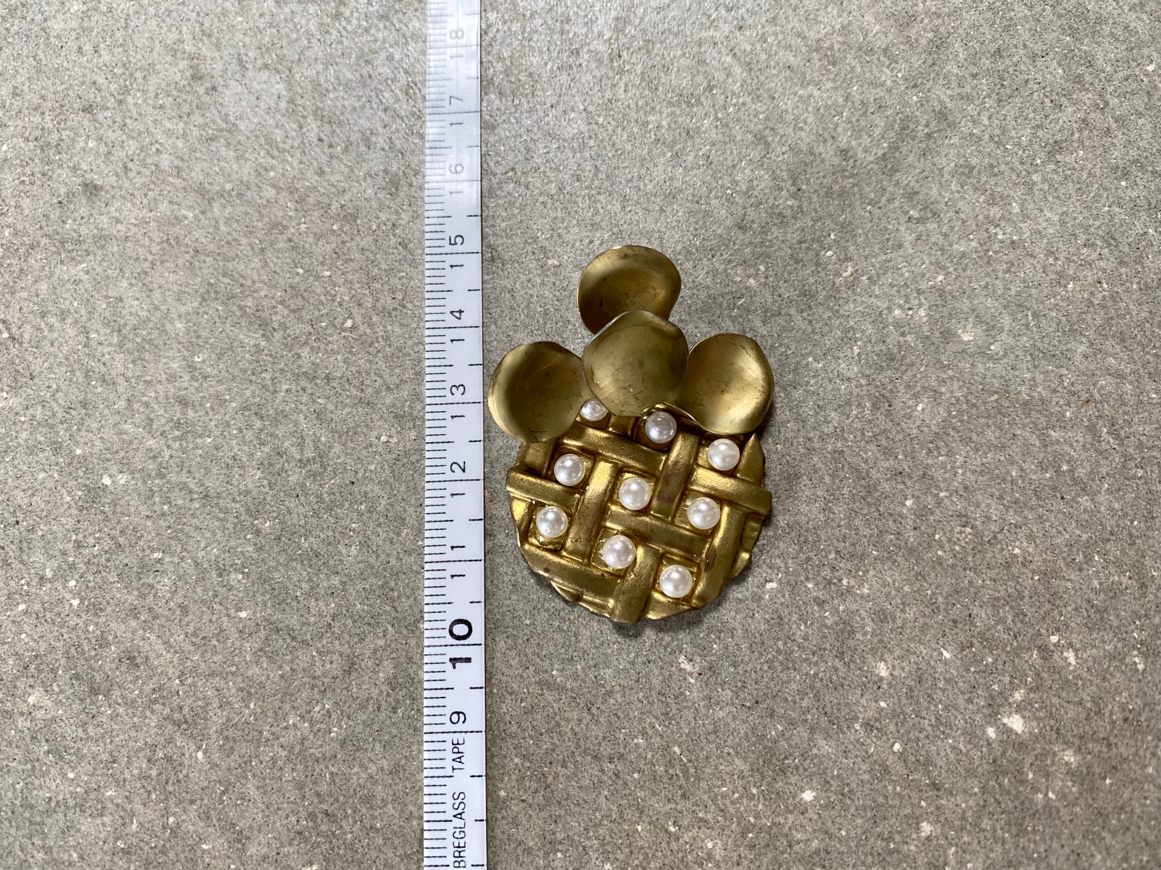 お花のカボションに大振りの真鍮パーツを合わせ、パールを散らしました。