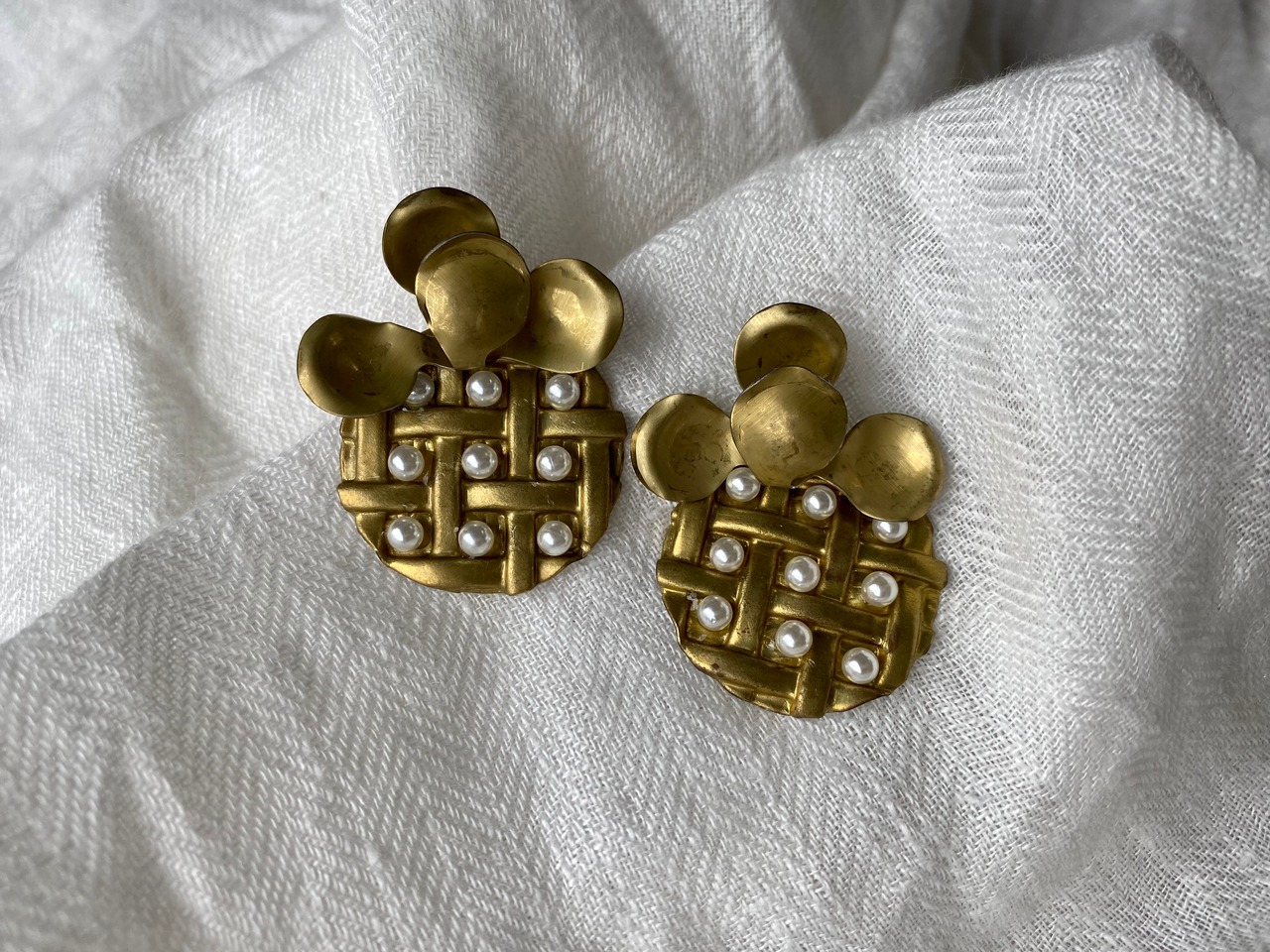 ヴィンテージパーツを組み合わせてピアスを作りました。