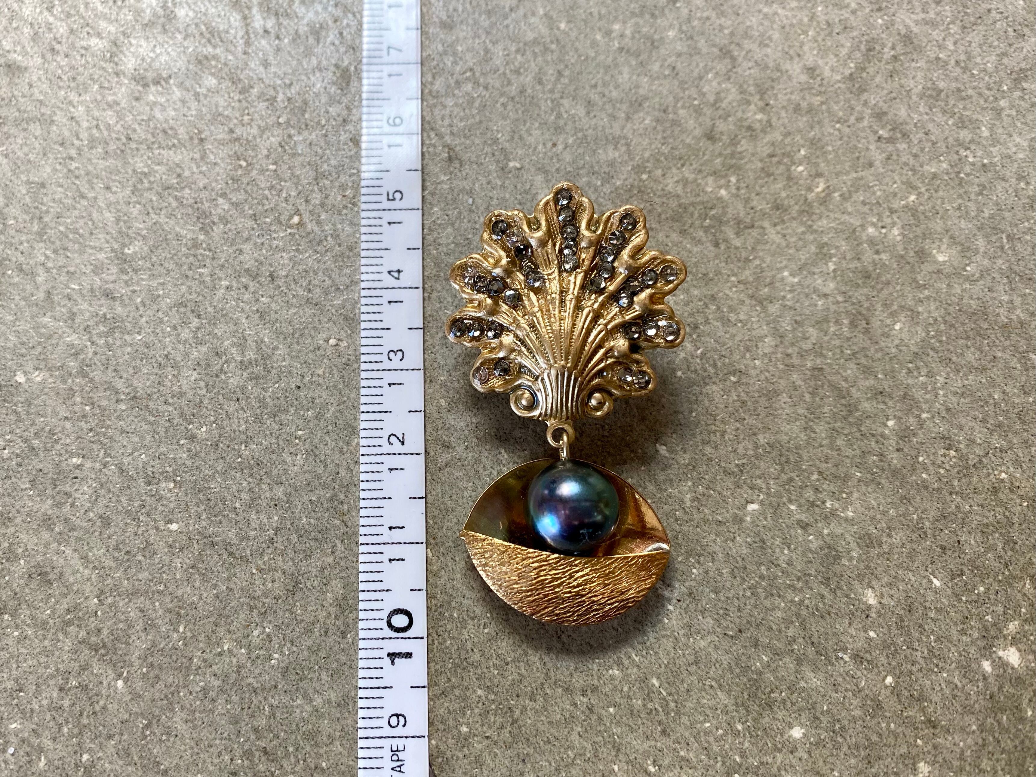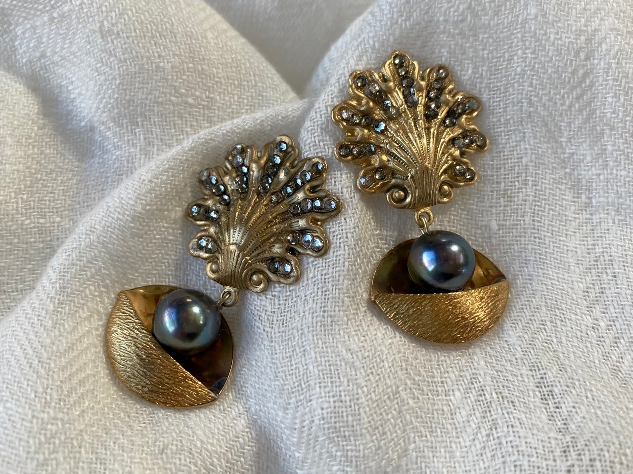 優美なシェルモチーフの真鍮パーツに、パールやスワロフスキーがよく映えます。