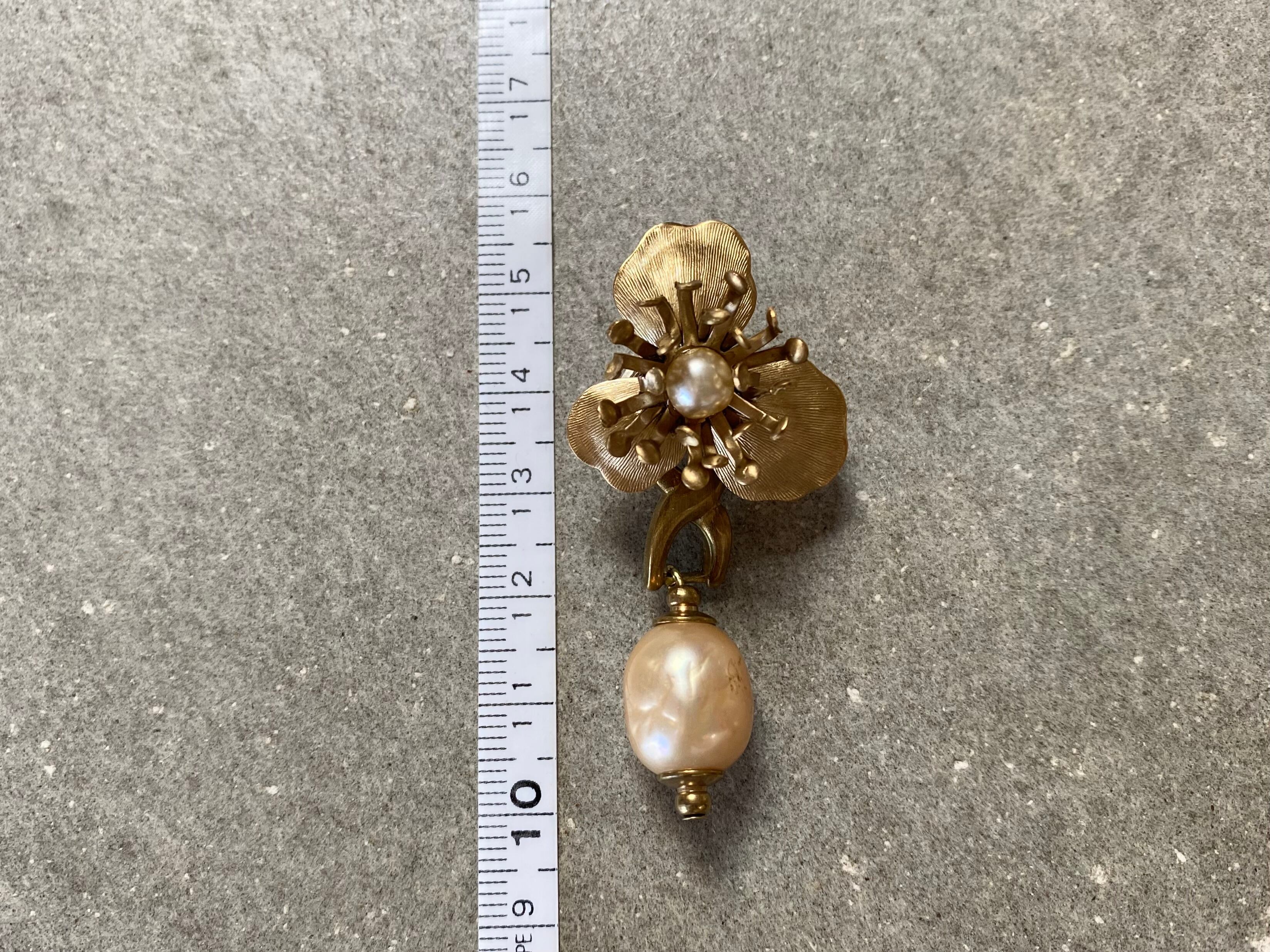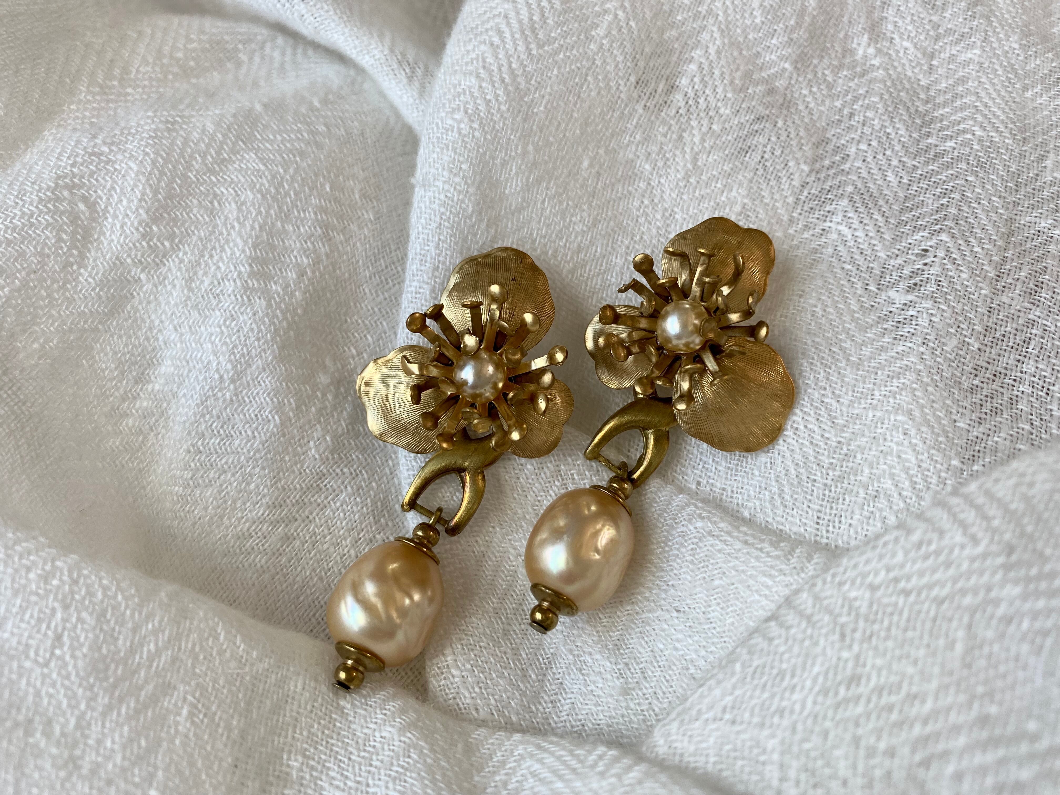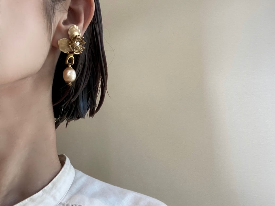 大振りのボタニカルパーツとクラシカルなパールが華やかな印象です。