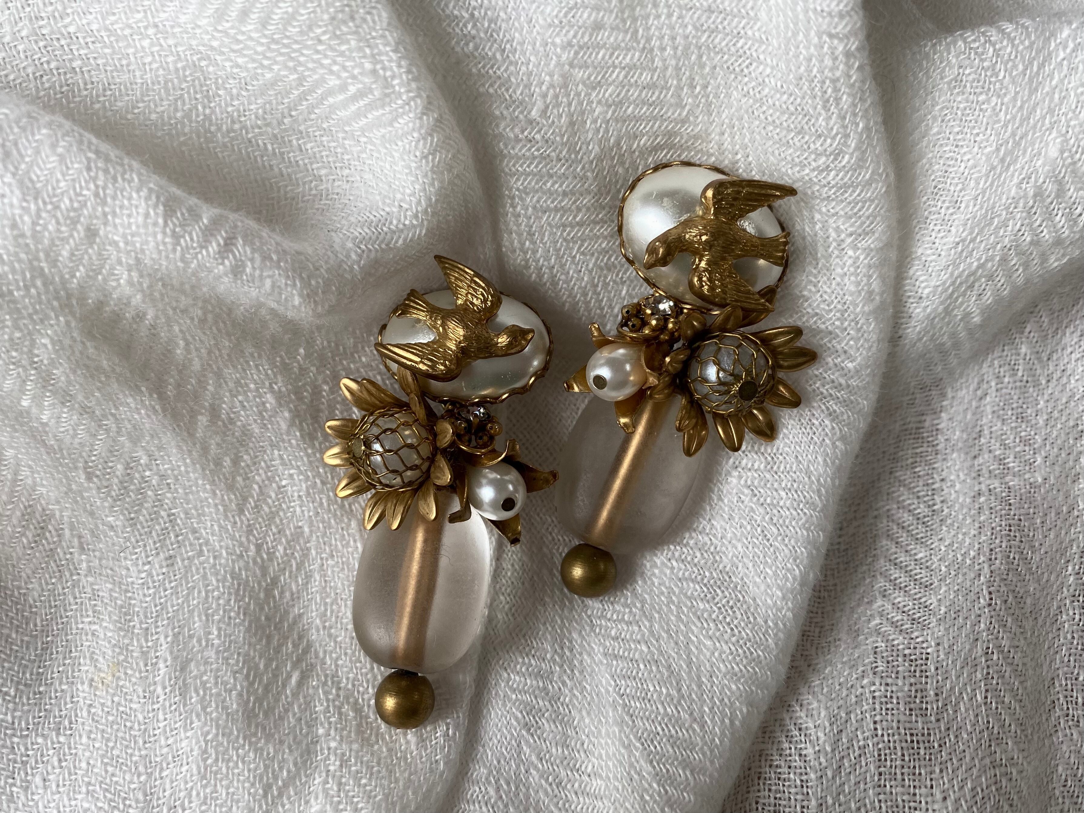 ヴィンテージパーツを使用して、ピアスを作りました。
