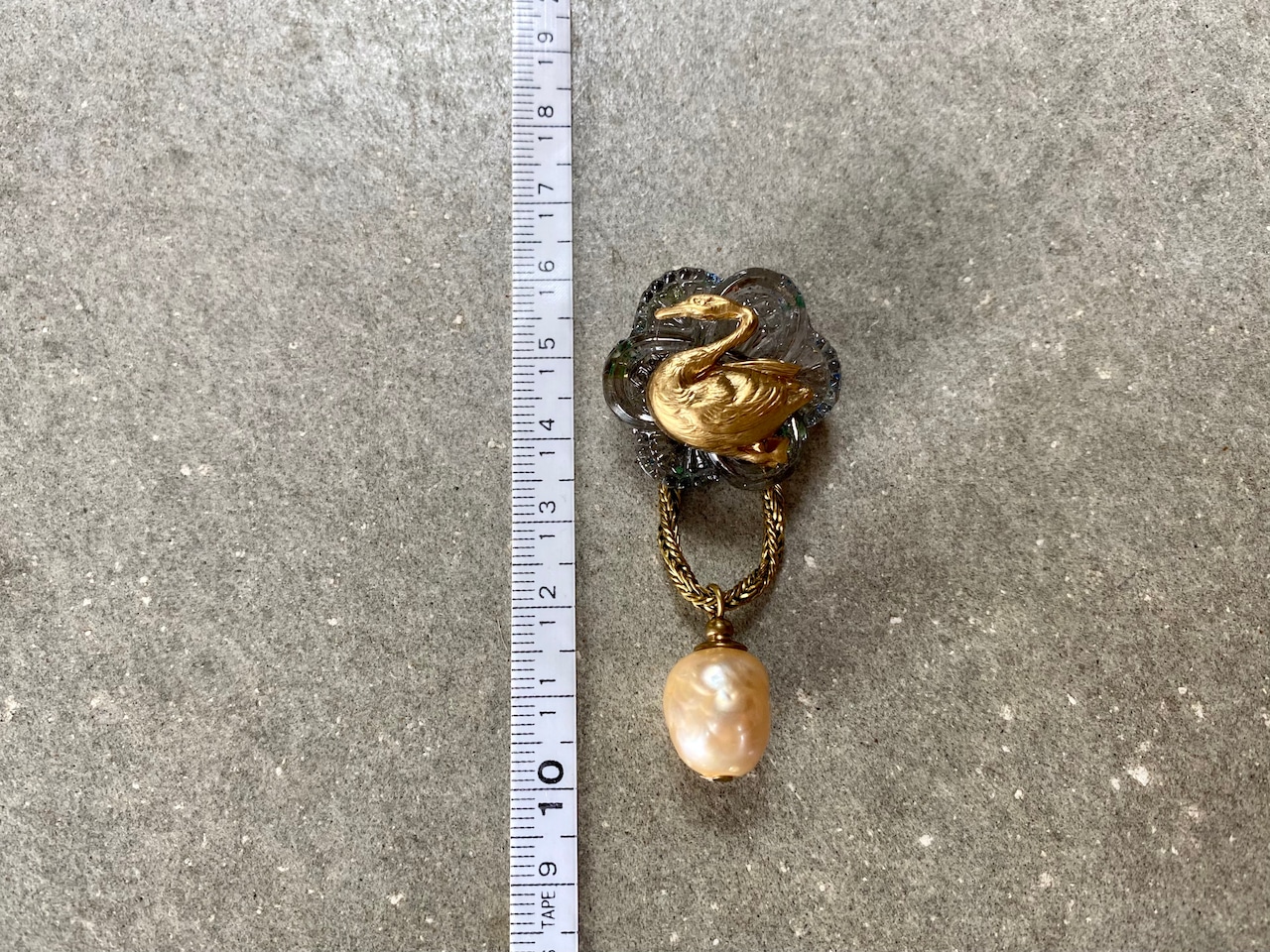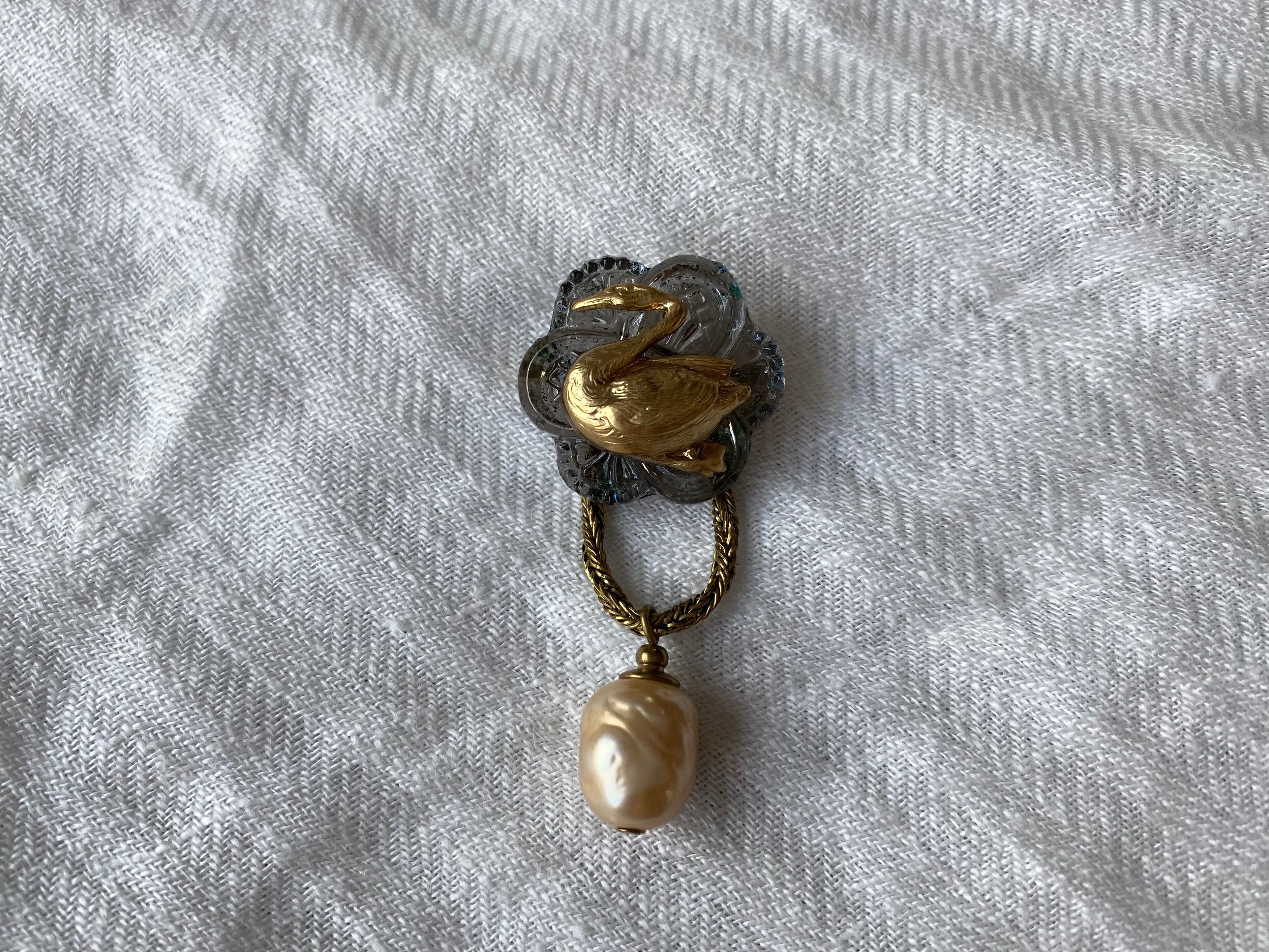 キラキラと繊細な輝きのガラスの中央に、優雅な水鳥を置いて、クラシカルなチェーンとパールを添えました。