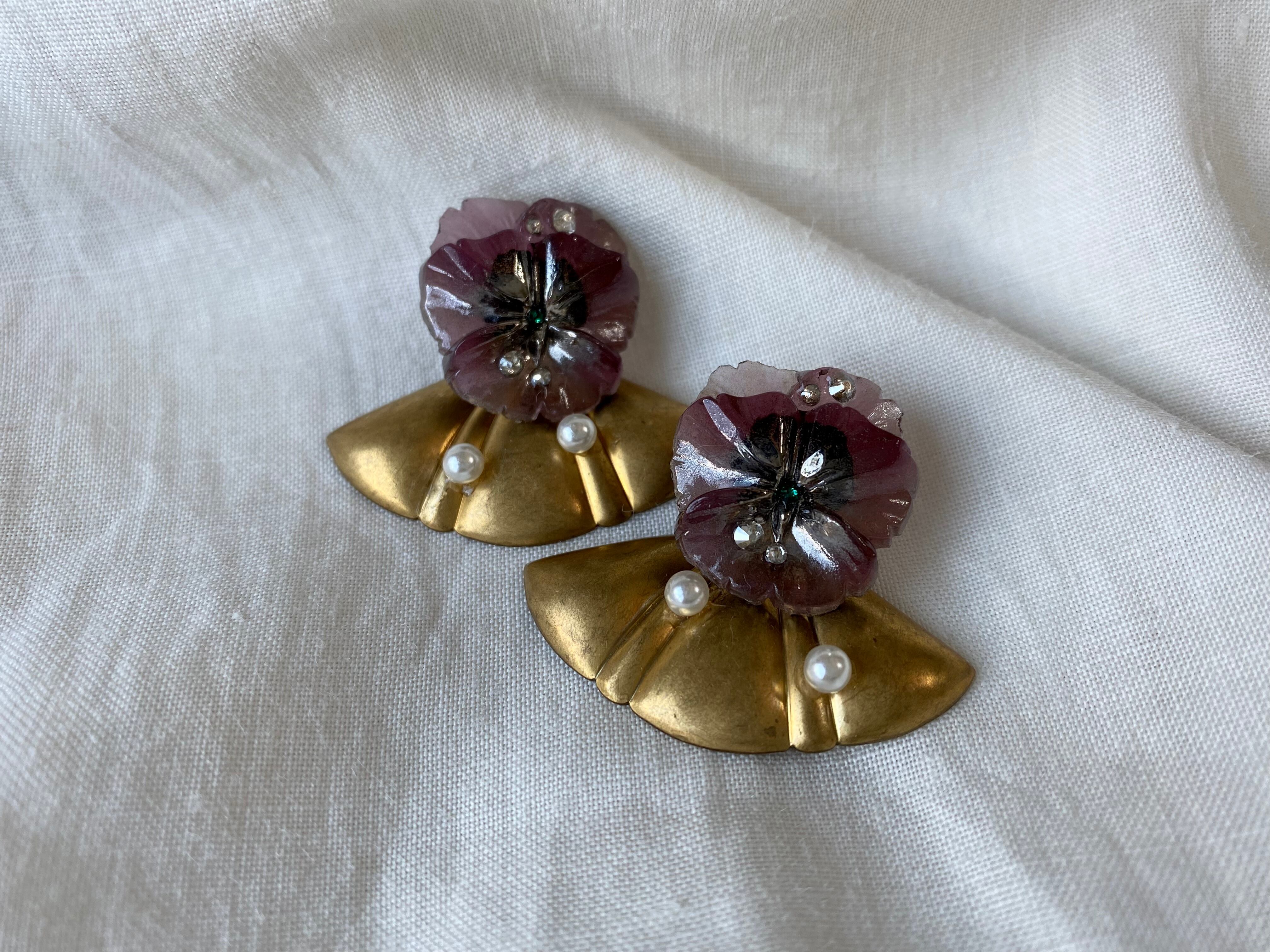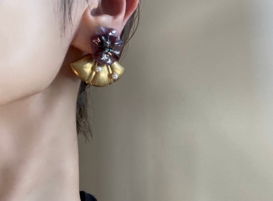 扇形の真鍮パーツを添えて存在感も華やかさもプラスして、デイリーだけでなくお呼ばれにもピッタリのデザインに仕上げました。