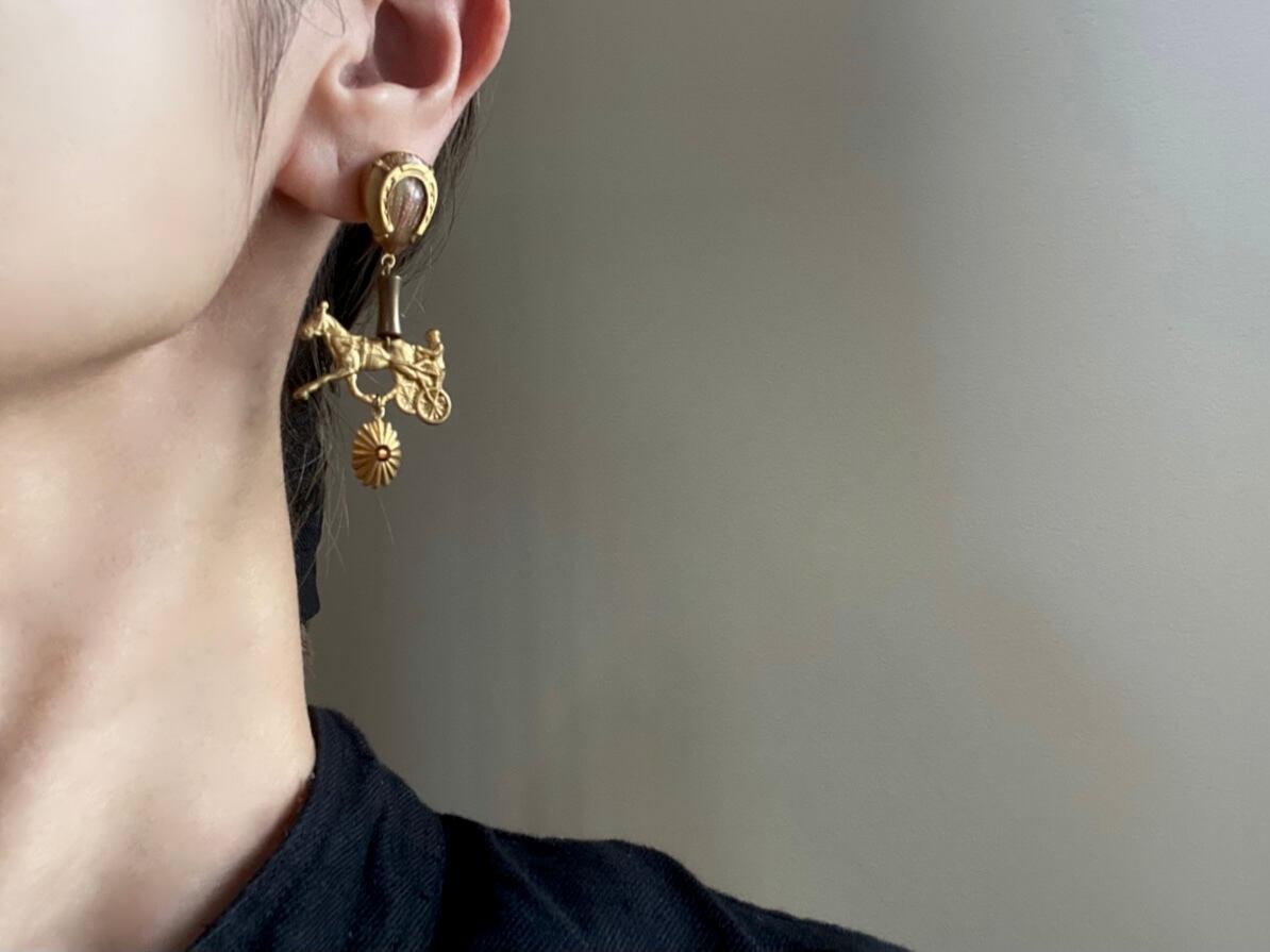 ヴィンテージパーツを使用して、アシンメトリーなピアスを作りました。