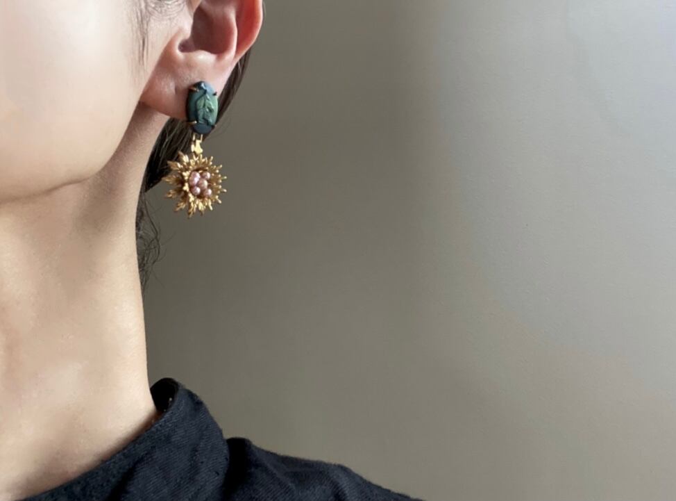 ボタニカルパーツには柔らかなニュアンスカラーのパールを詰めて、優しい印象に仕上げました。