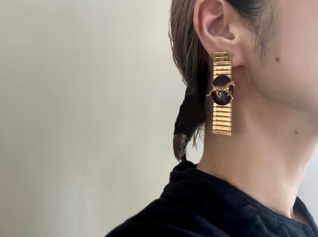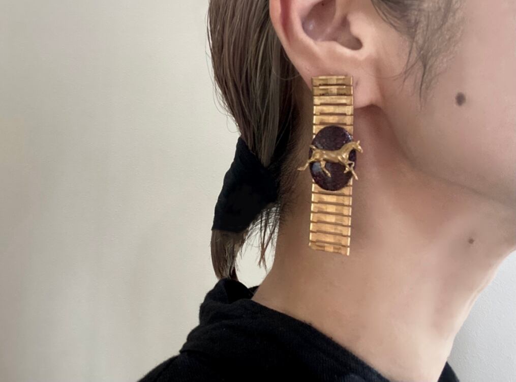 ヴィンテージパーツを使用して、アシンメトリーなピアスを作りました。