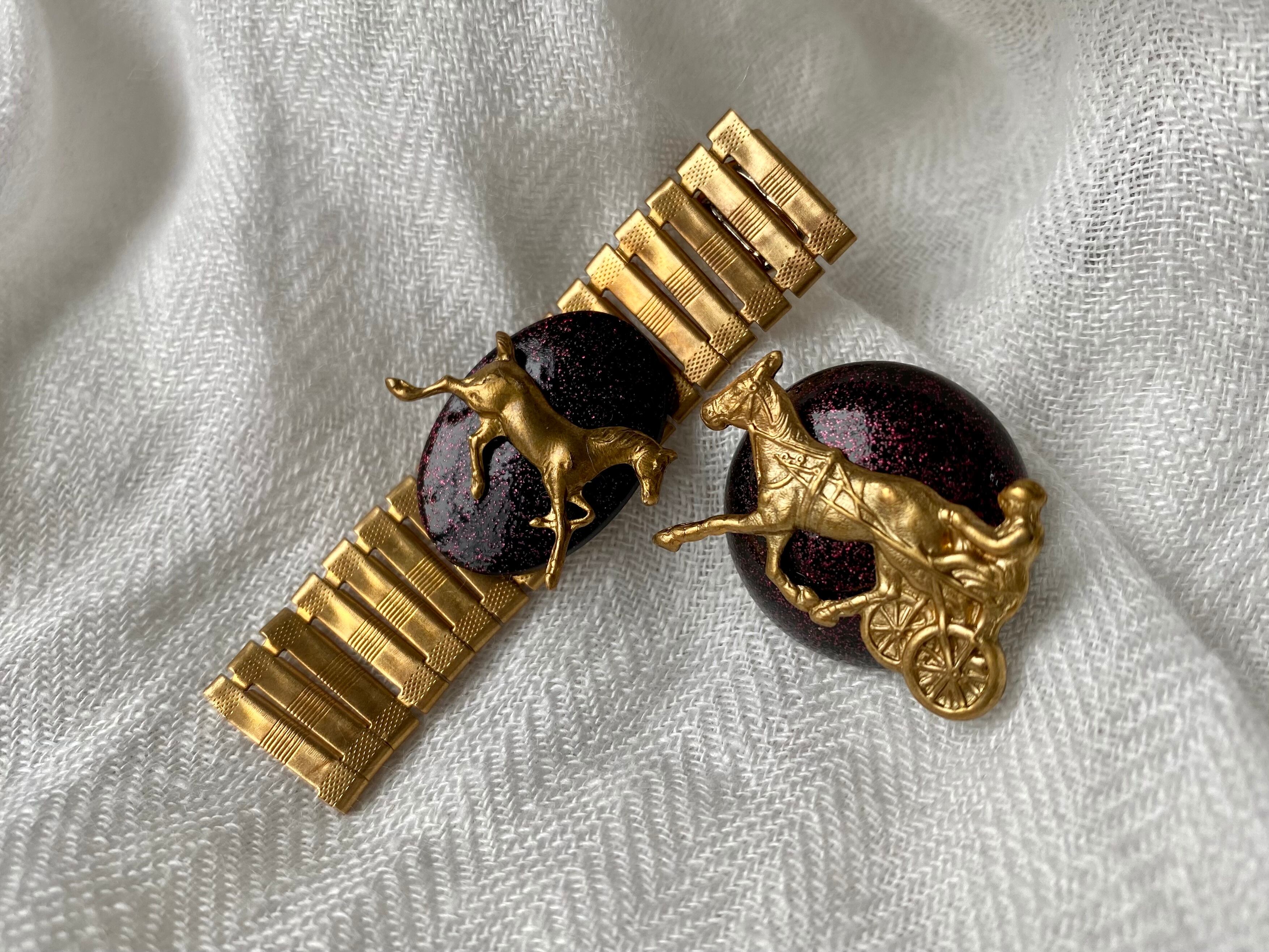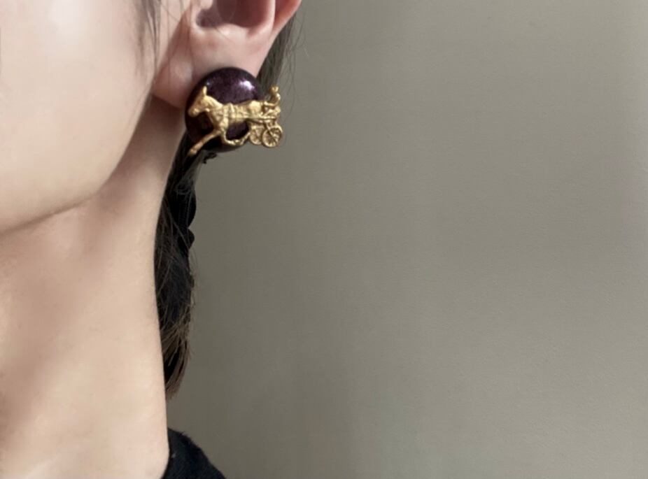 深いメタリックボルドーがシックな印象で、真鍮の馬とも好相性です。
