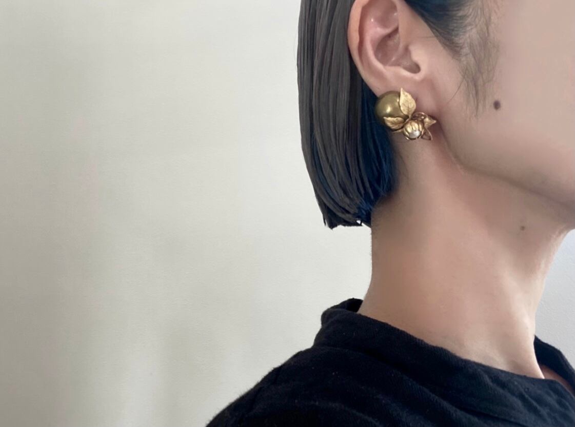 カボションに使われているドイツヴィンテージのコットンパールも、こっくりとした渋いゴールドカラーで、これからの季節にピッタリの雰囲気です。