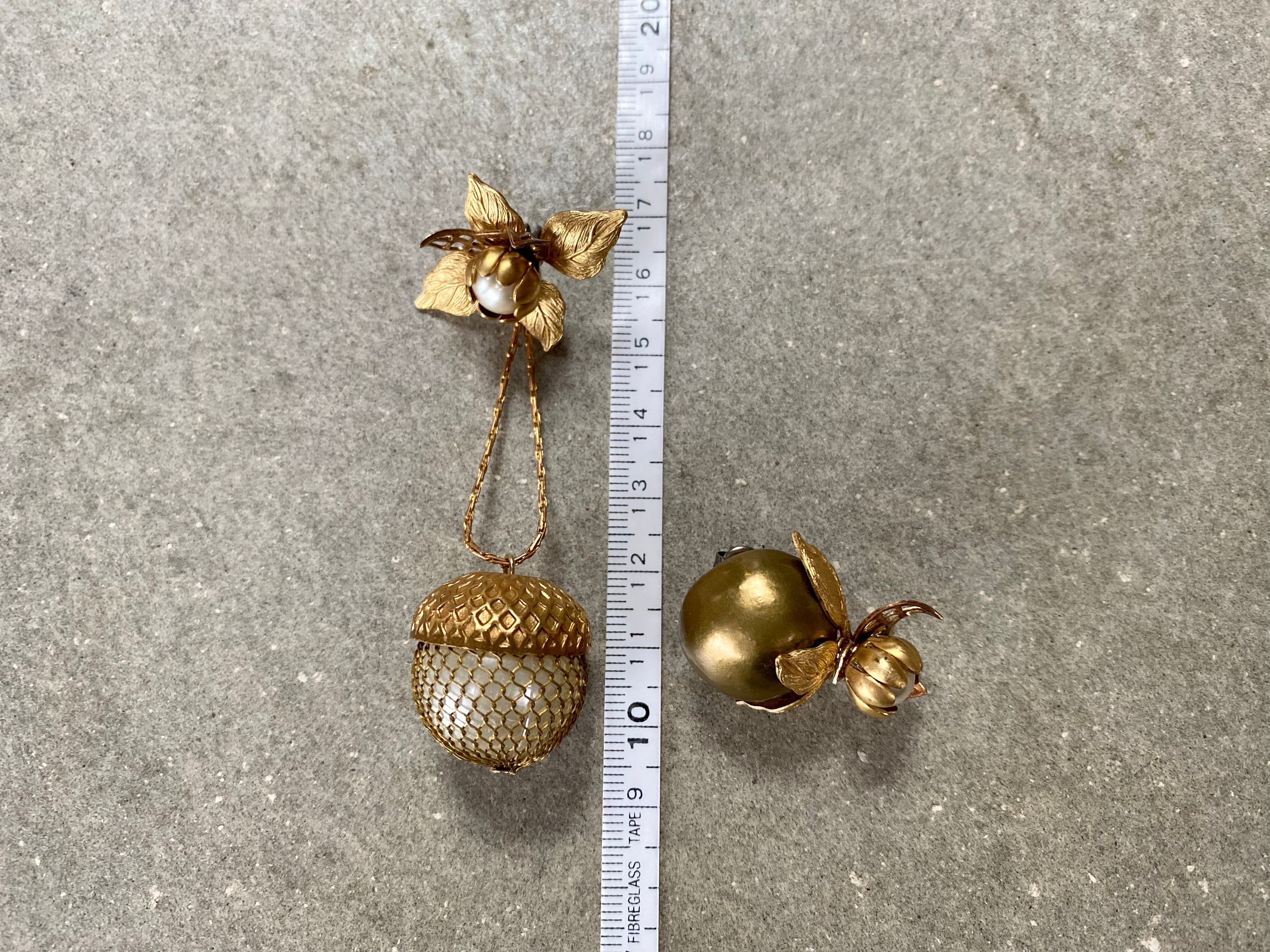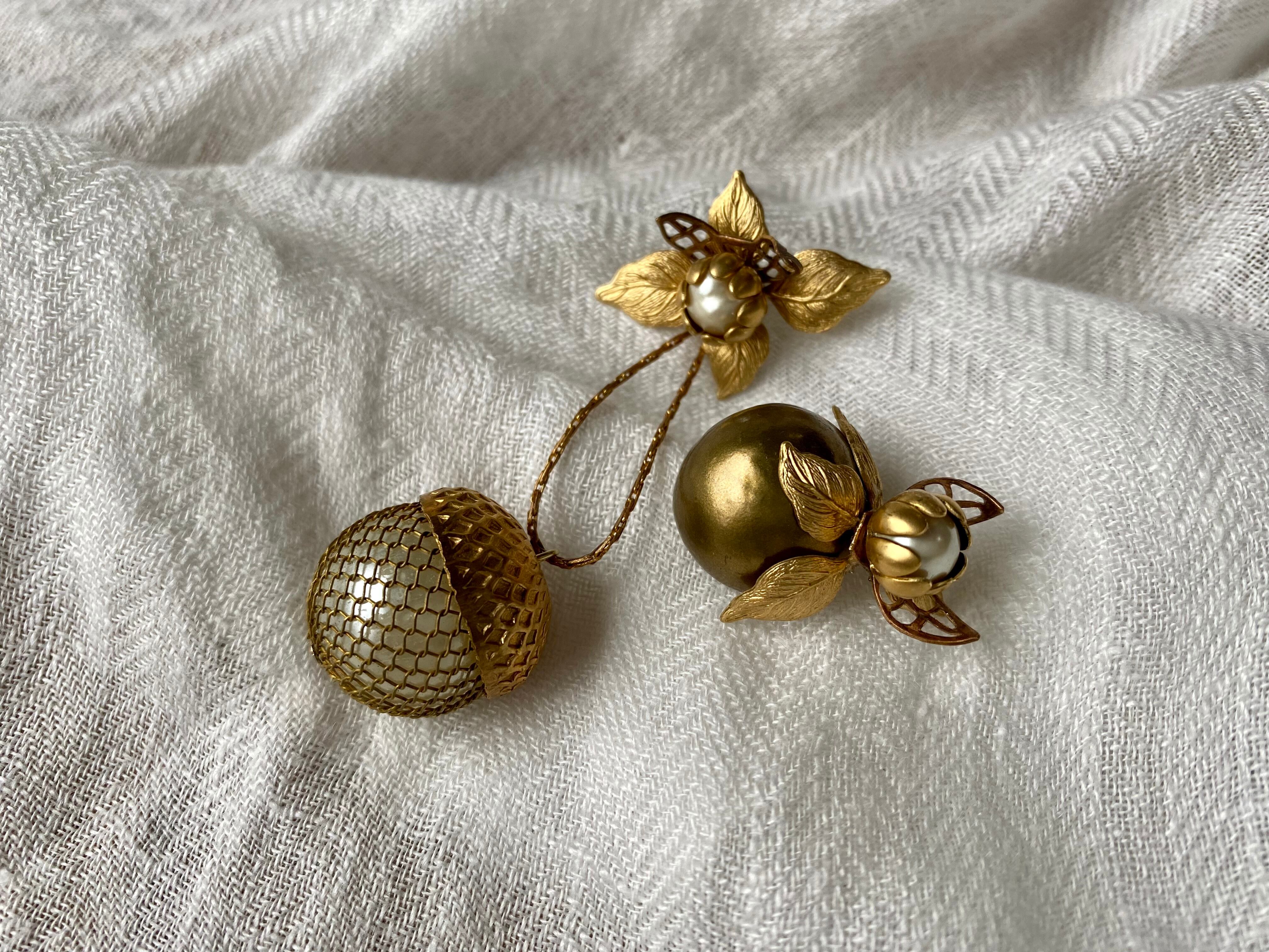 木の実の様なころんとしたフォルムと葉を重ねたボタニカルパーツが魅力的な作品です。