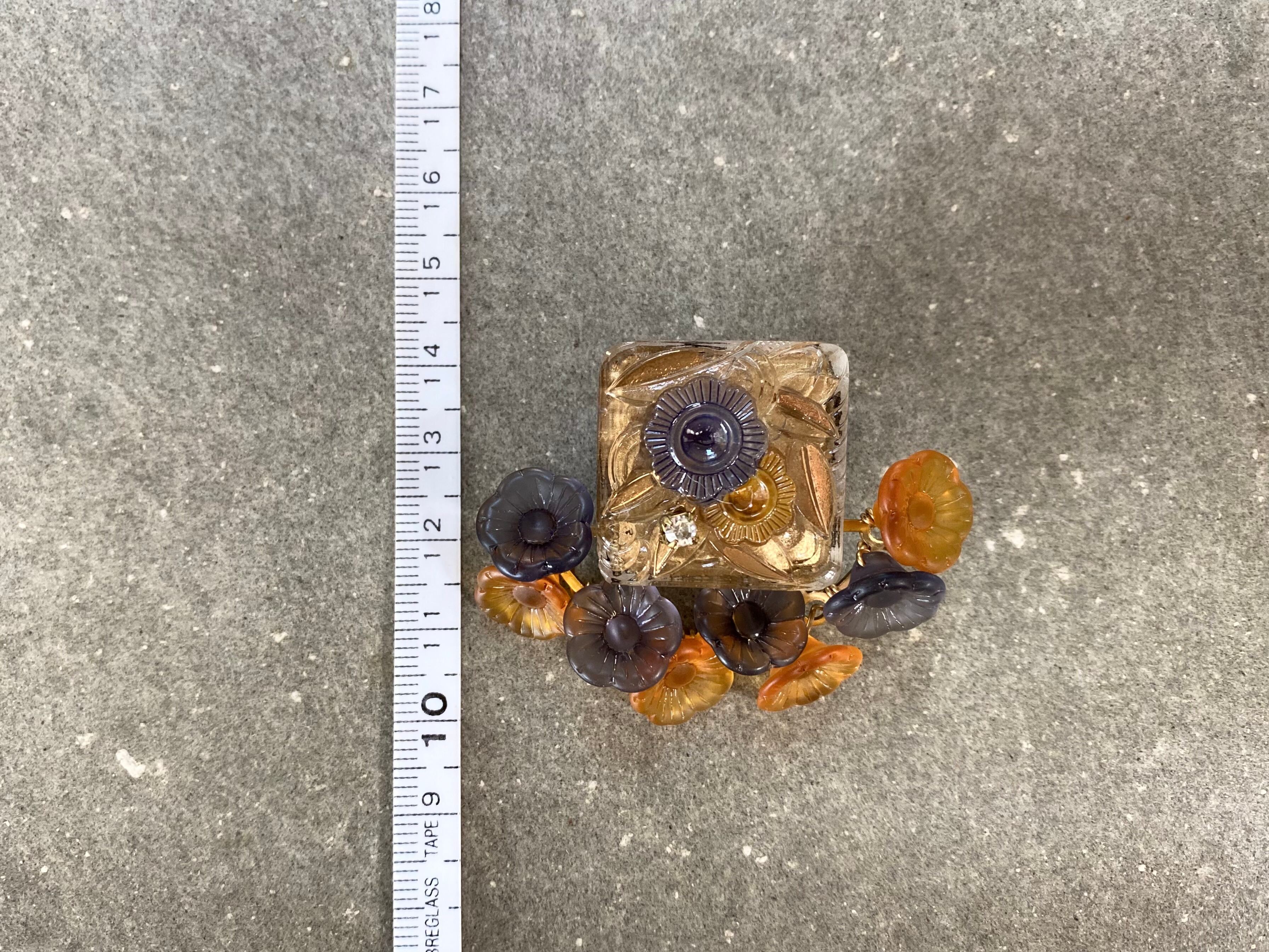 大きめのガラスボタンの周りにお花のガラスビーズを散らして華やかに仕上げました。