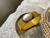 真鍮のベルトに存在感のあるガラスパールをひとつ添え、シンプルに仕上げました。